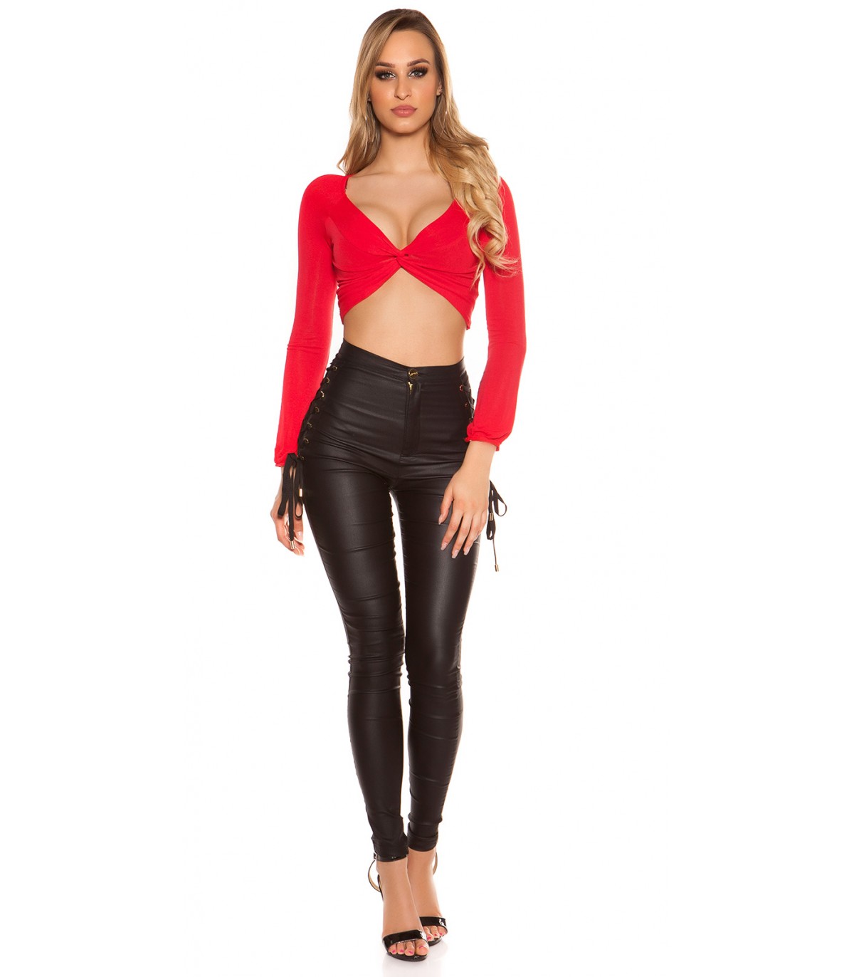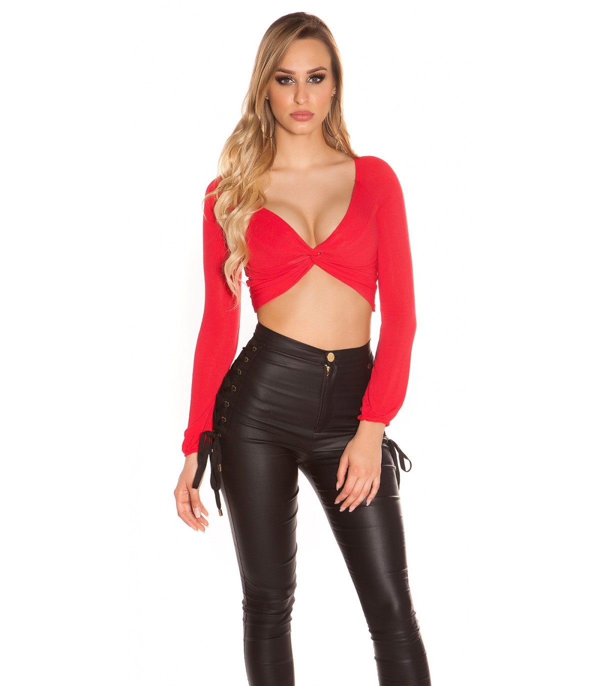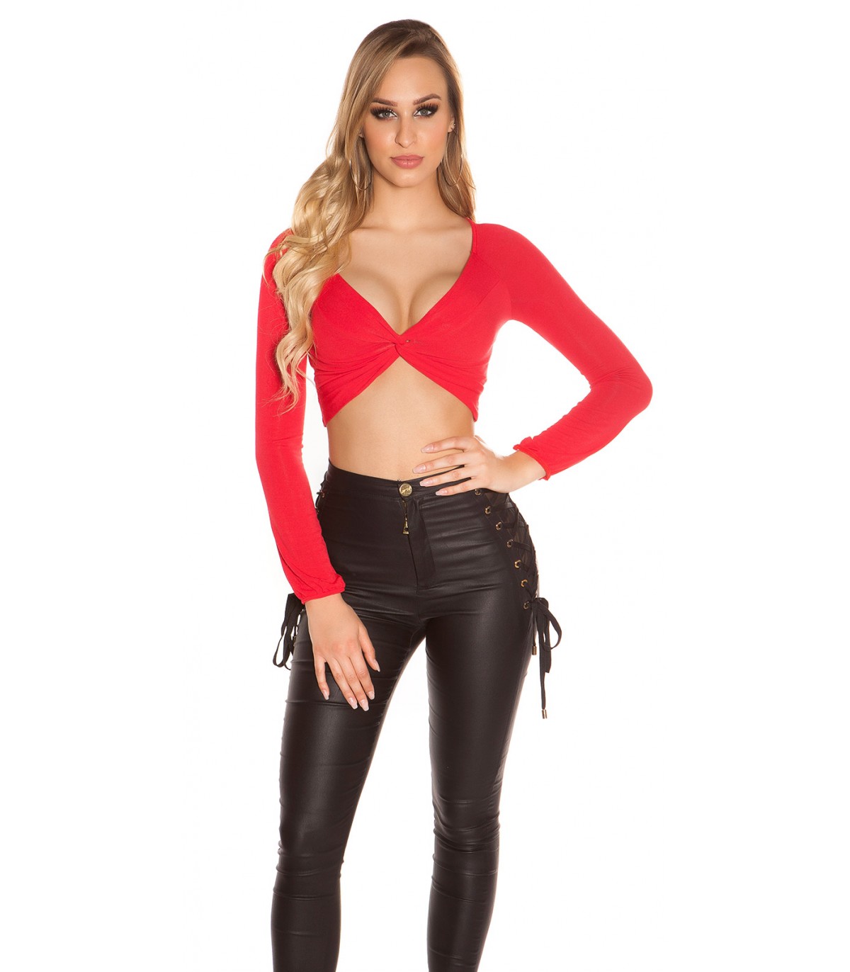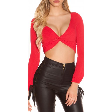Koucla punainen pitkähihainen lyhyt v-solmupaita [LÖYTÖ]