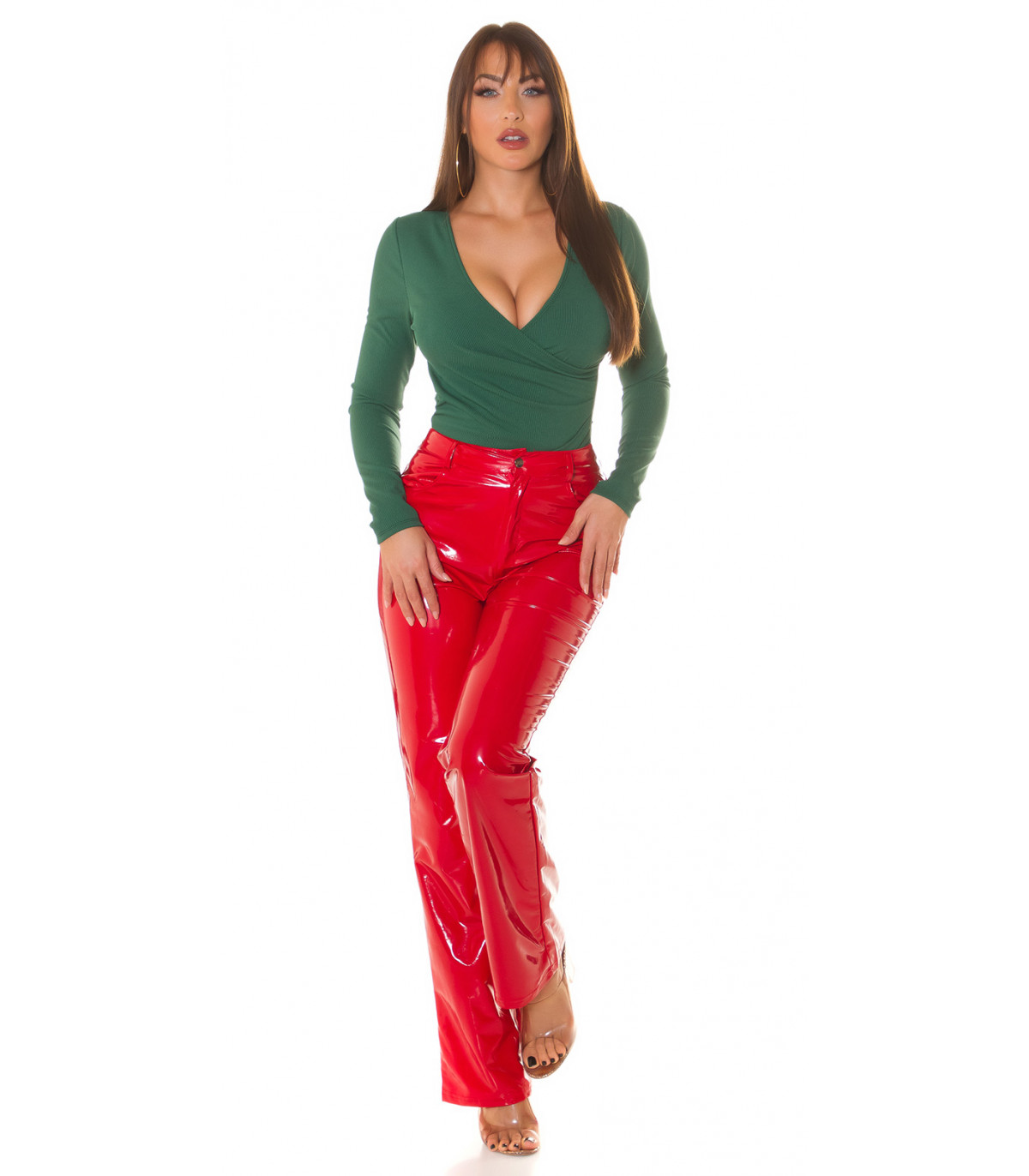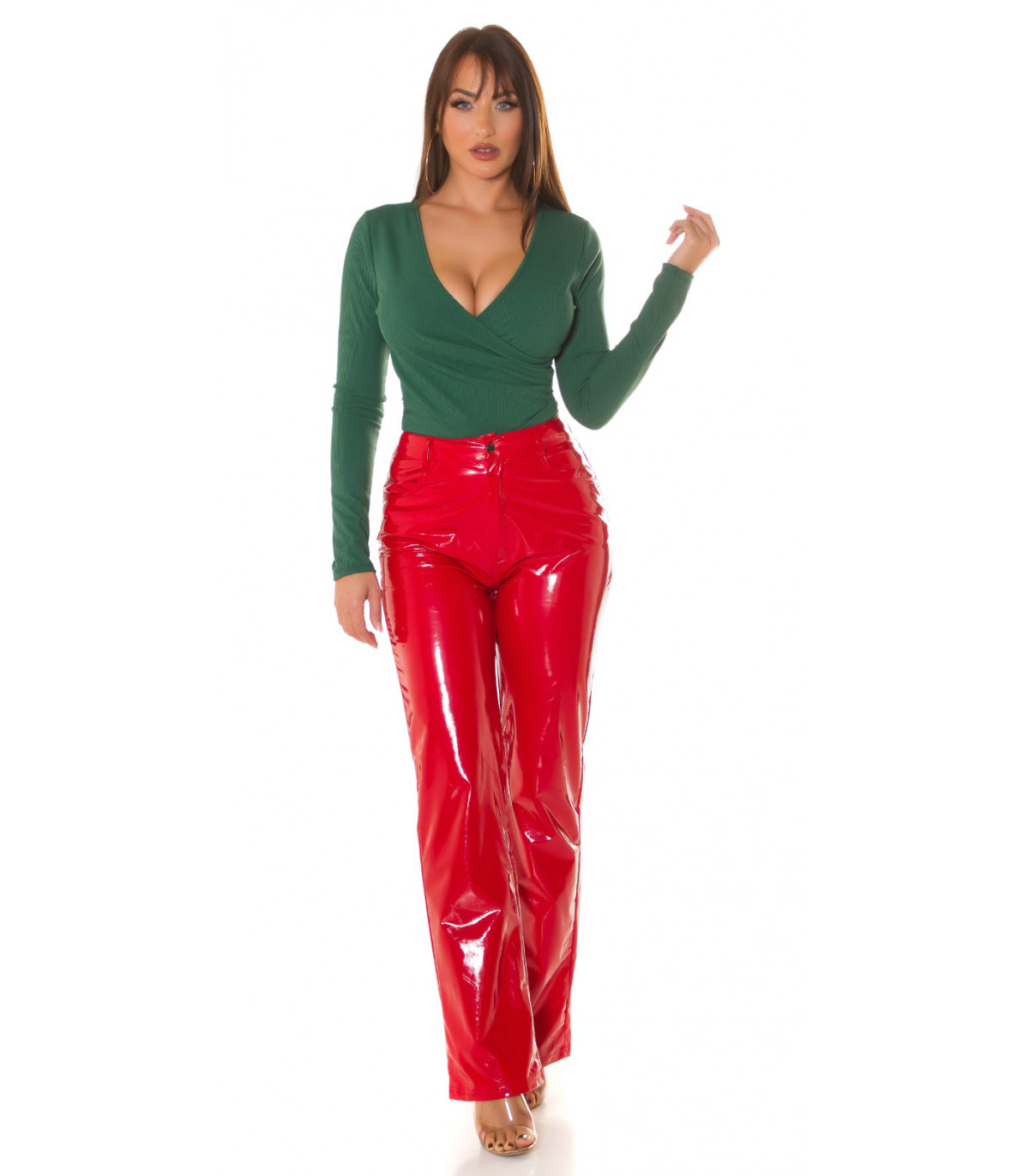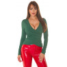 Vihreä pitkähihainen wrap-look v-ribbipaita