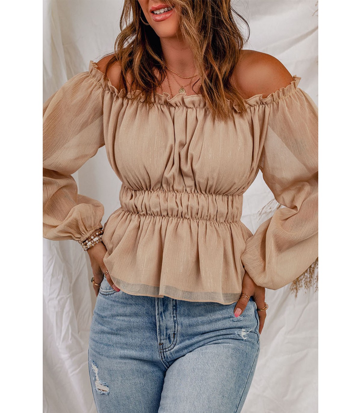 Plus de details Älä mieti liian pitkään - viimeinen kappale varastossa!Aprikoosi off-shoulder pusero pussihihoilla [LÖYTÖ]