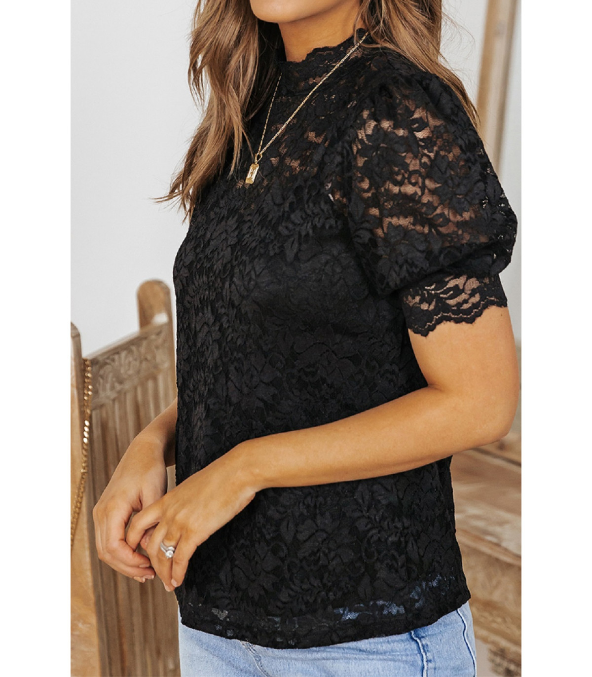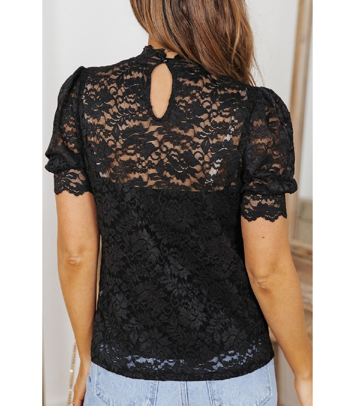 Plus de details Älä mieti liian pitkään - viimeinen kappale varastossa!Musta lyhythihainen pitsinen pusero