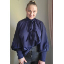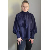 Pitkähihainen tummansininen pusero pussihihoilla ja solmittavilla rusettinauhoilla. Puseron kaulukseen solmittava rusetti on upea yksityiskohta, joka kerää kehuja. Puserossa on myös ihanat pussihihat ja hihansuita koristaa tyylikkäät napit.