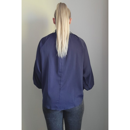 Tummansininen pussihihainen pusero rusettinauhoilla