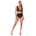 Musta kaksiolkaiminen lyhyt latex look v-toppi. Hotpantsit/hame eivät sisälly tuotteeseen.