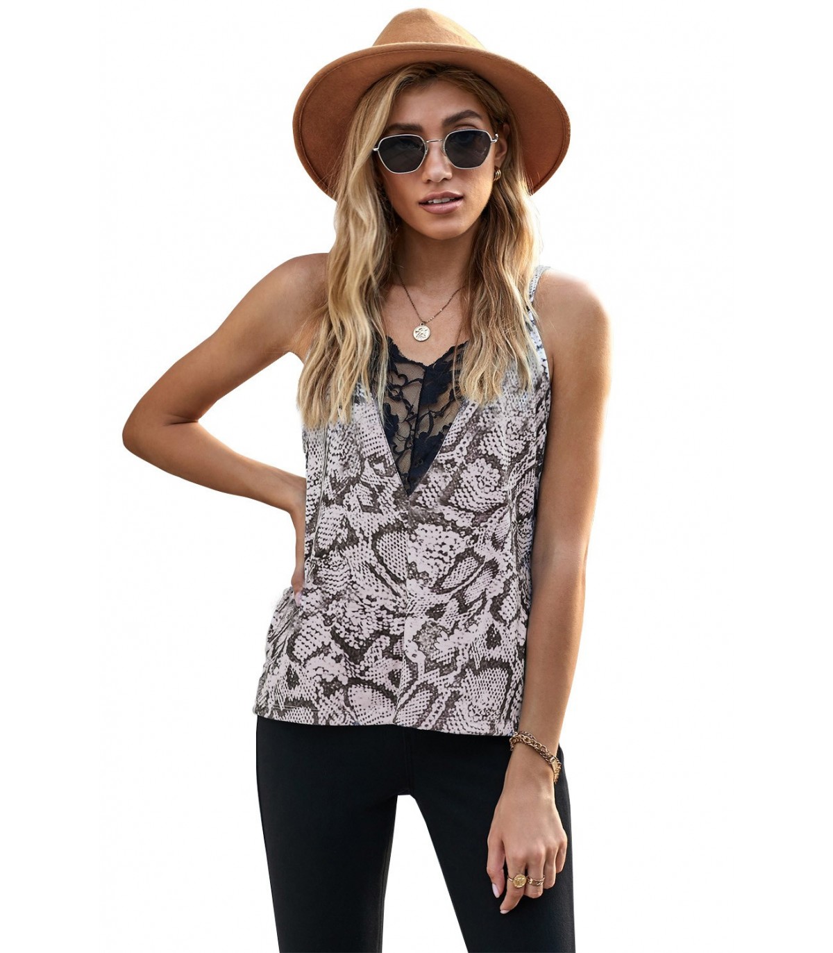 Plus de details Älä mieti liian pitkään - viimeinen kappale varastossa!Käärmekuvioinen pitsikoristeinen toppi [LÖYTÖ]