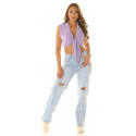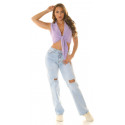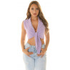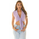 Lila edestä solmittava lyhyt toppipusero. Seksikäs crop toppi syvään uurretulla kaula-aukolla on mitä parhain treffitoppi, sillä tässä topissa yhdistyy seksikkyys ja tyylikkyys. Erityisen upealta se näyttää korkeavyötäröisen alaosan kanssa. Kaunis lila toppi tuo ihanasti väriä asukokonaisuuteen. Hihaton pusero on helppo yhdistää erilaisten jakkujen ja neuletakkien kanssa.