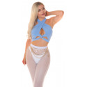 Koucla vaaleansininen lyhyt neckholder toppi kurkistusaukolla ja nauhoilla