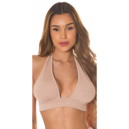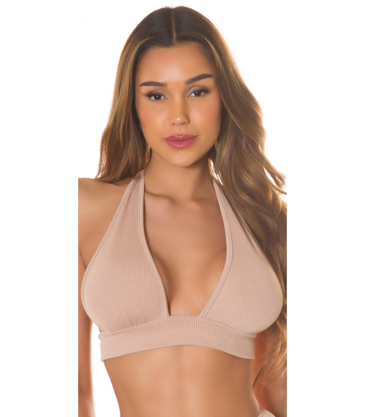 Koucla cappuccino lyhyt halterneck v-ribbitoppi