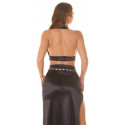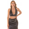 Koucla musta halterneck lyhyt v-satiinitoppi