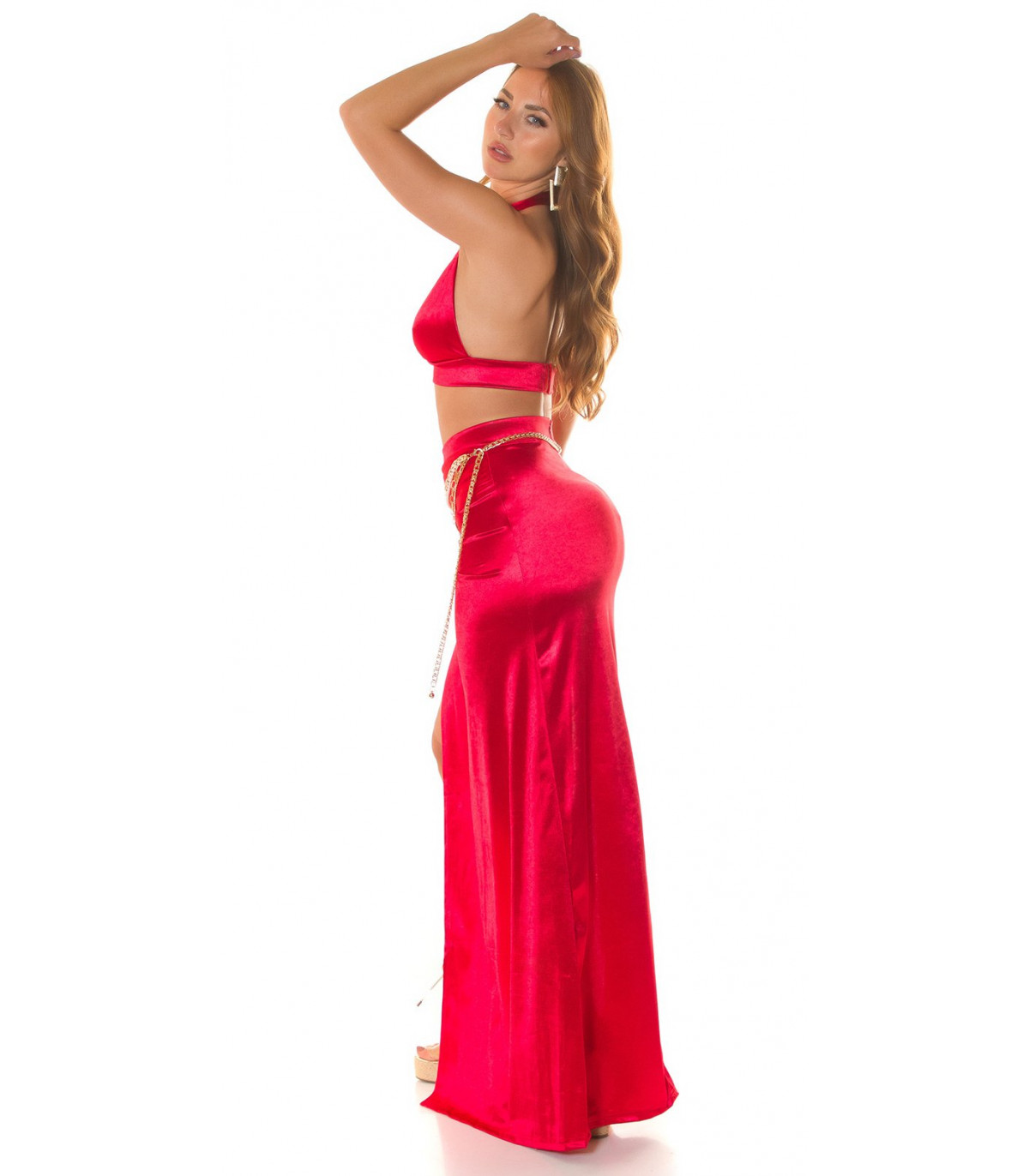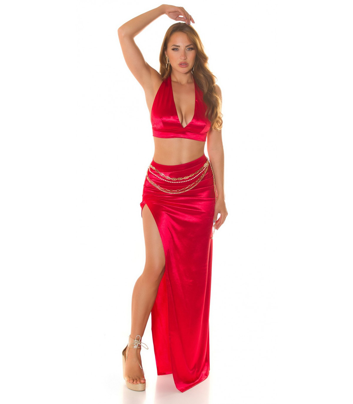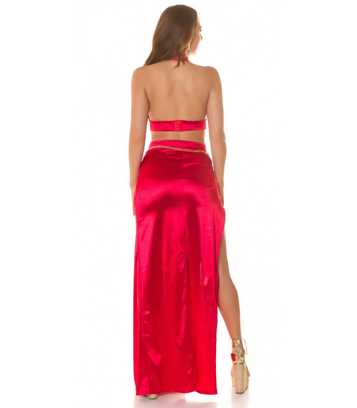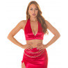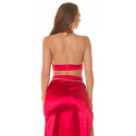 Koucla punainen halterneck lyhyt v-satiinitoppi