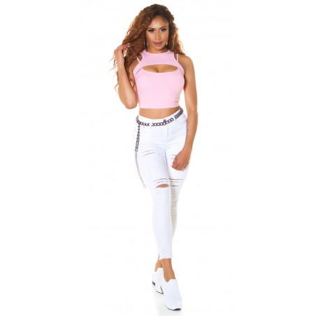 Vaaleanpunainen lyhyt ribbitoppi kurkistusaukolla