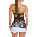Koucla solmittava musta olkaimeton pitsitoppi