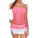 Koucla solmittava neonpinkki olkaimeton pitsitoppi