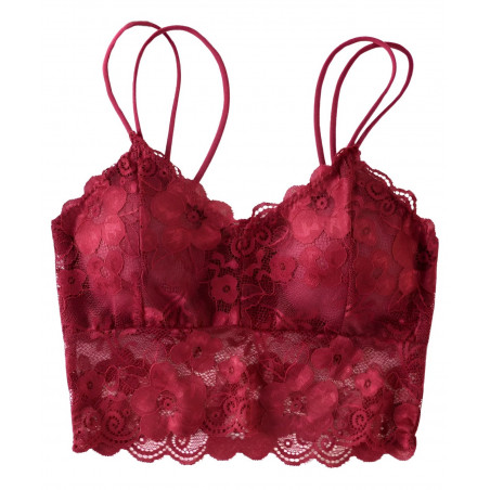 Kaunis viininpunainen pitsinen bralettetoppi - monikäyttöinen pitsitoppi sirolle naiselle
