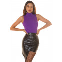 Kaunis väri ja materiaali on kivan ohut, ei tunnu liian kuumalta. Kaulus on ihanan korkea, iso plussa siitä ettei se ahdista kuitenkaan kaulaa. Materiaali on miellyttävä päällä ja todella joustavaa, omaan makuun jopa vähän liiankin joustava. Olisin halunnut topin olevan todella napakka ja myötäilevän vartalon muotoja täydellisesti. Nyt kangas jäi vähän mutrulle vyötäröltä, mutta ei liian häiritsevästi kuitenkaan.