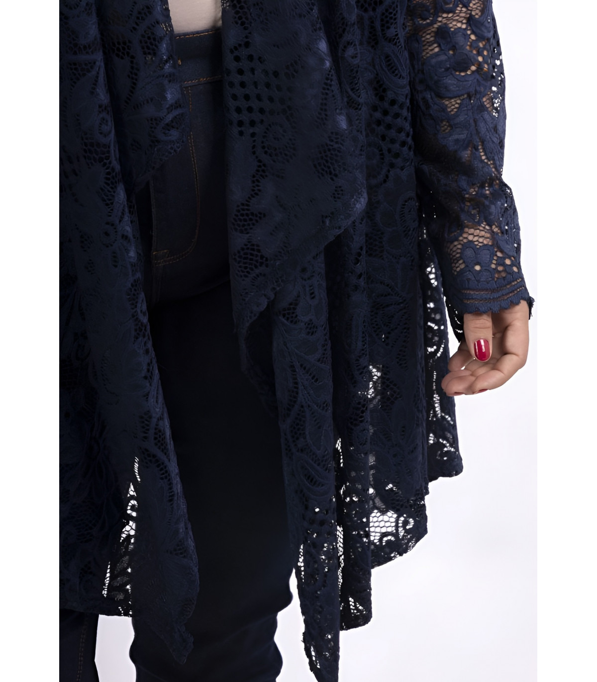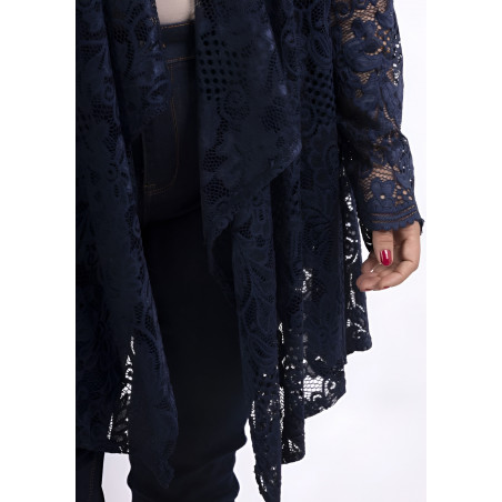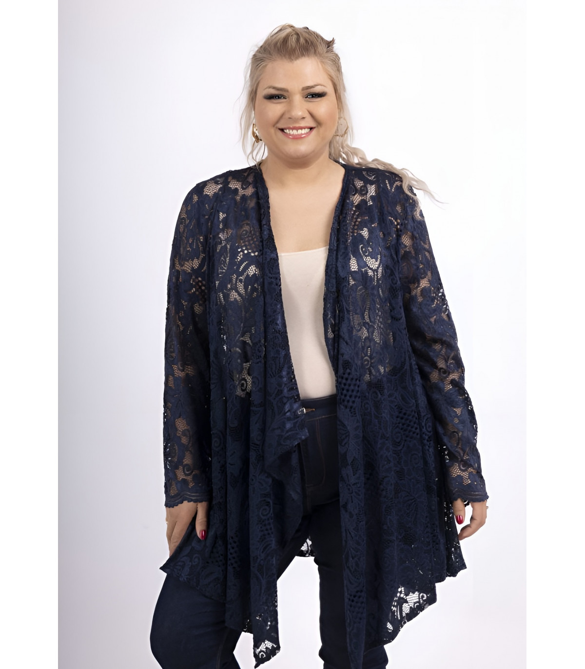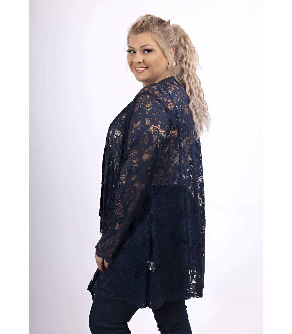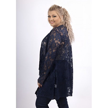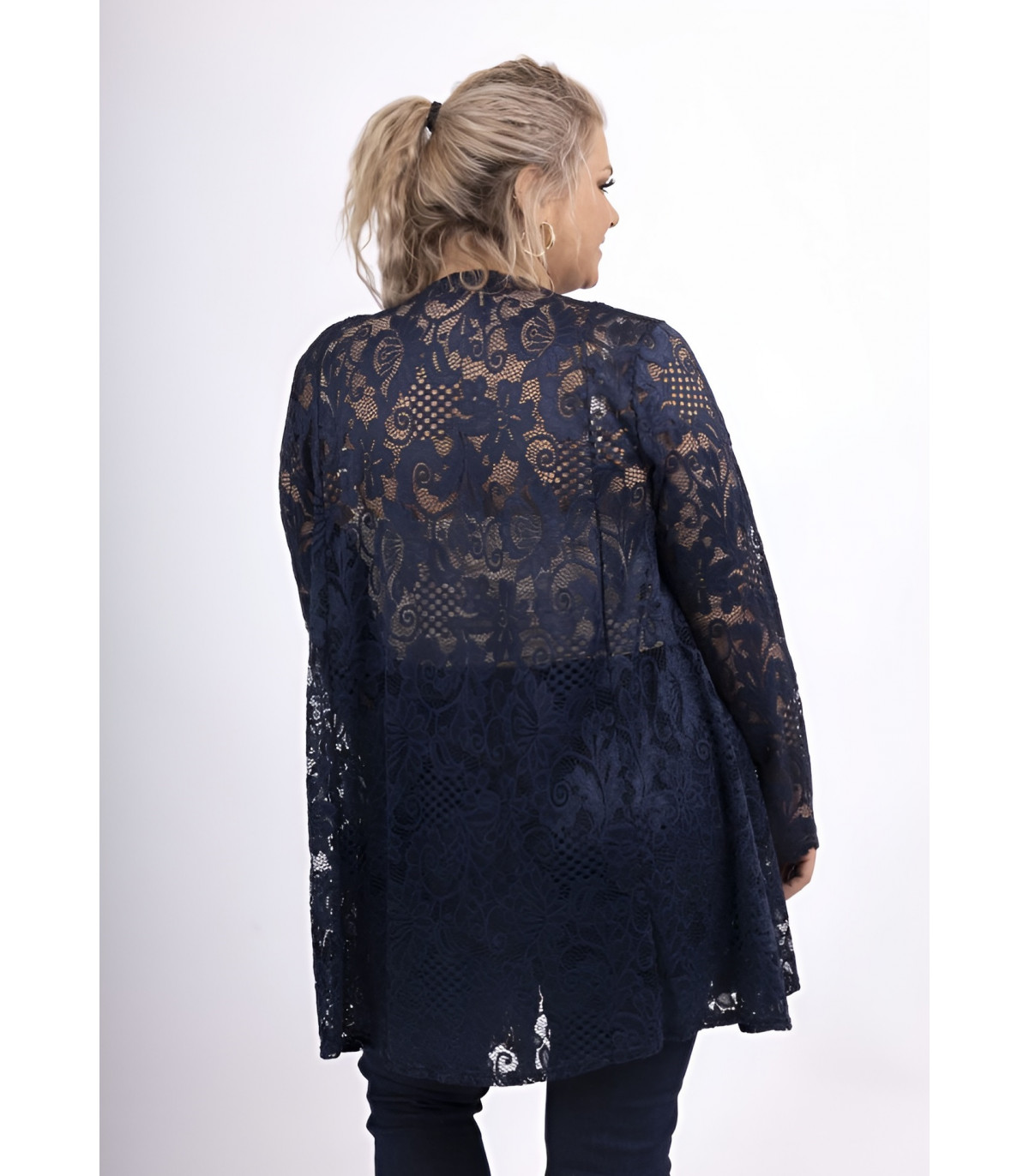 2W Paris tummansininen pitsineuletakki plus koossa - elegantti ja naisellinen vaate muodokkaalle naiselle