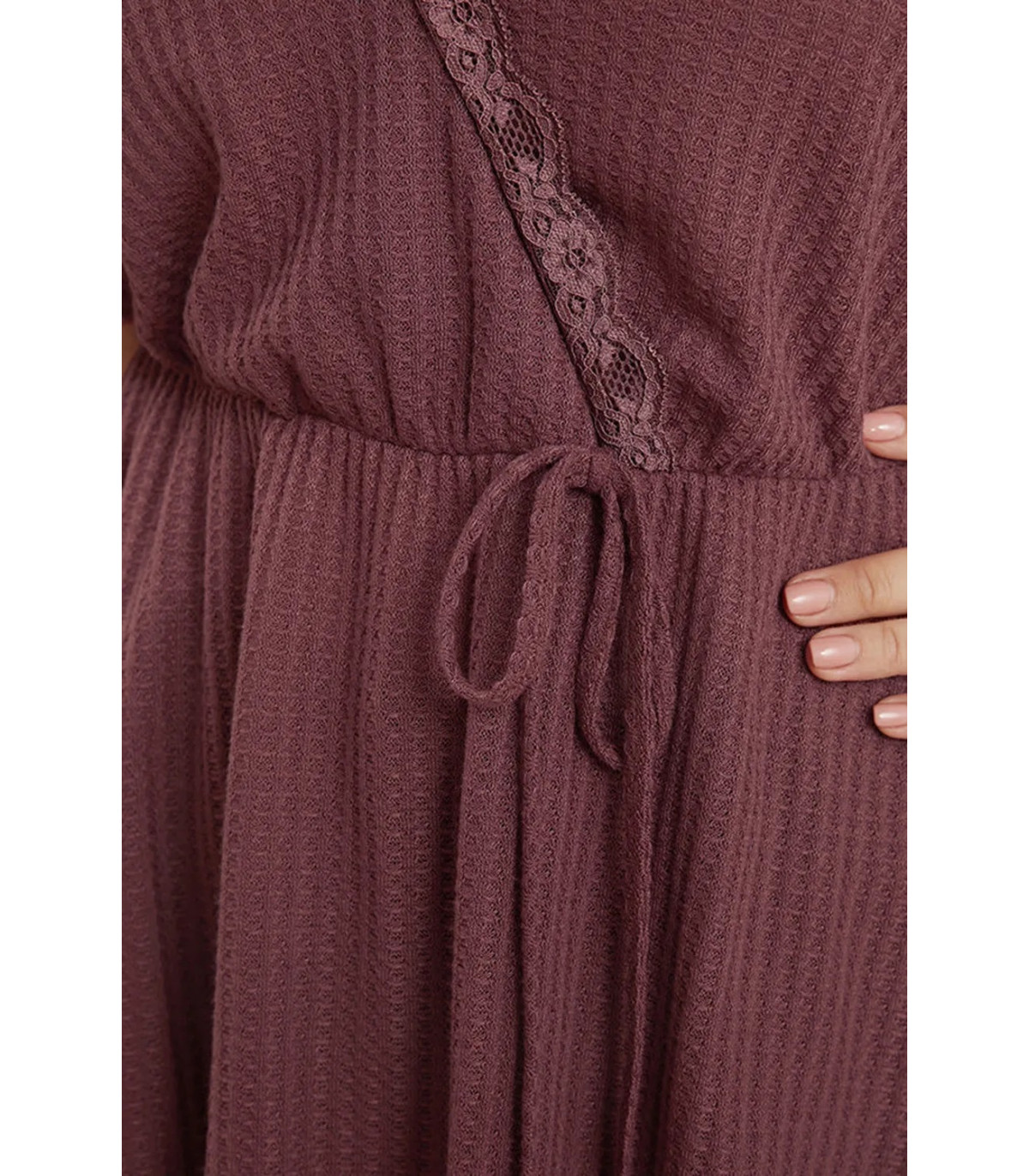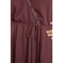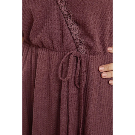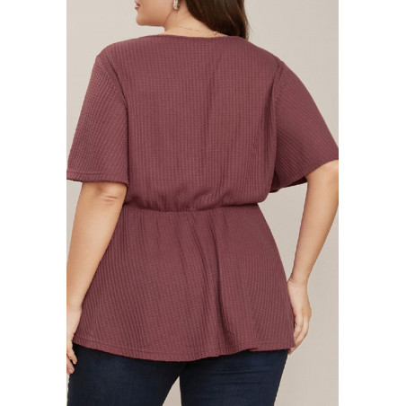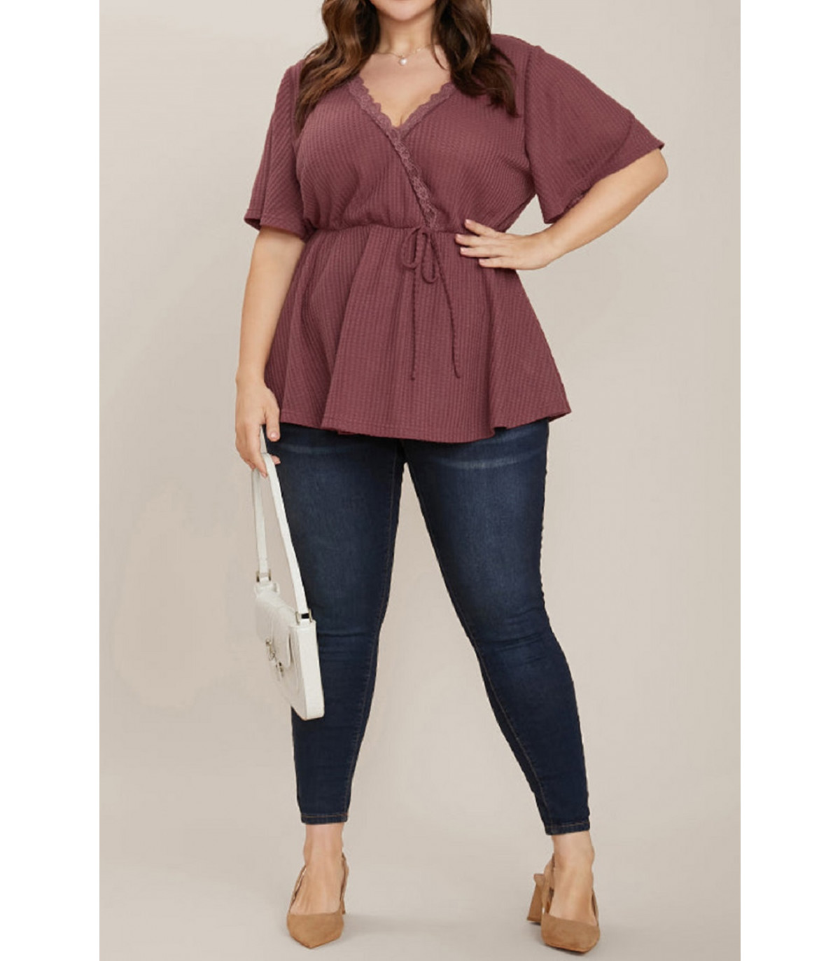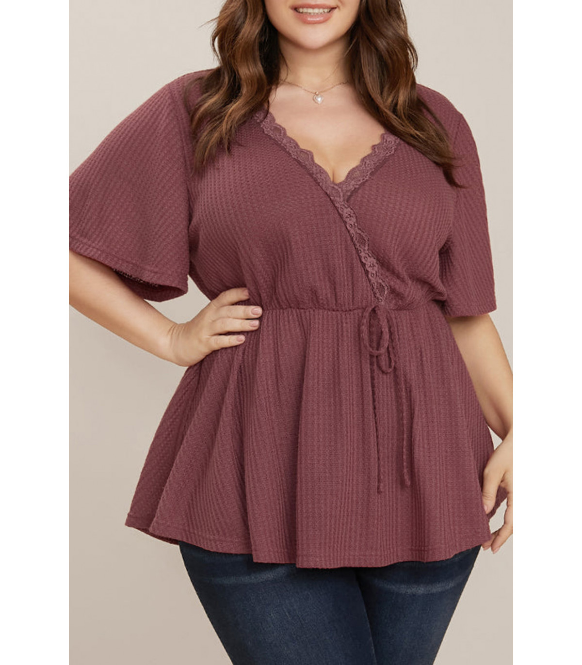Plus de details Älä mieti liian pitkään - viimeinen kappale varastossa!Ruskeanpunainen lyhythihainen v-vohvelipaita pitsillä (plus size)