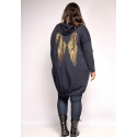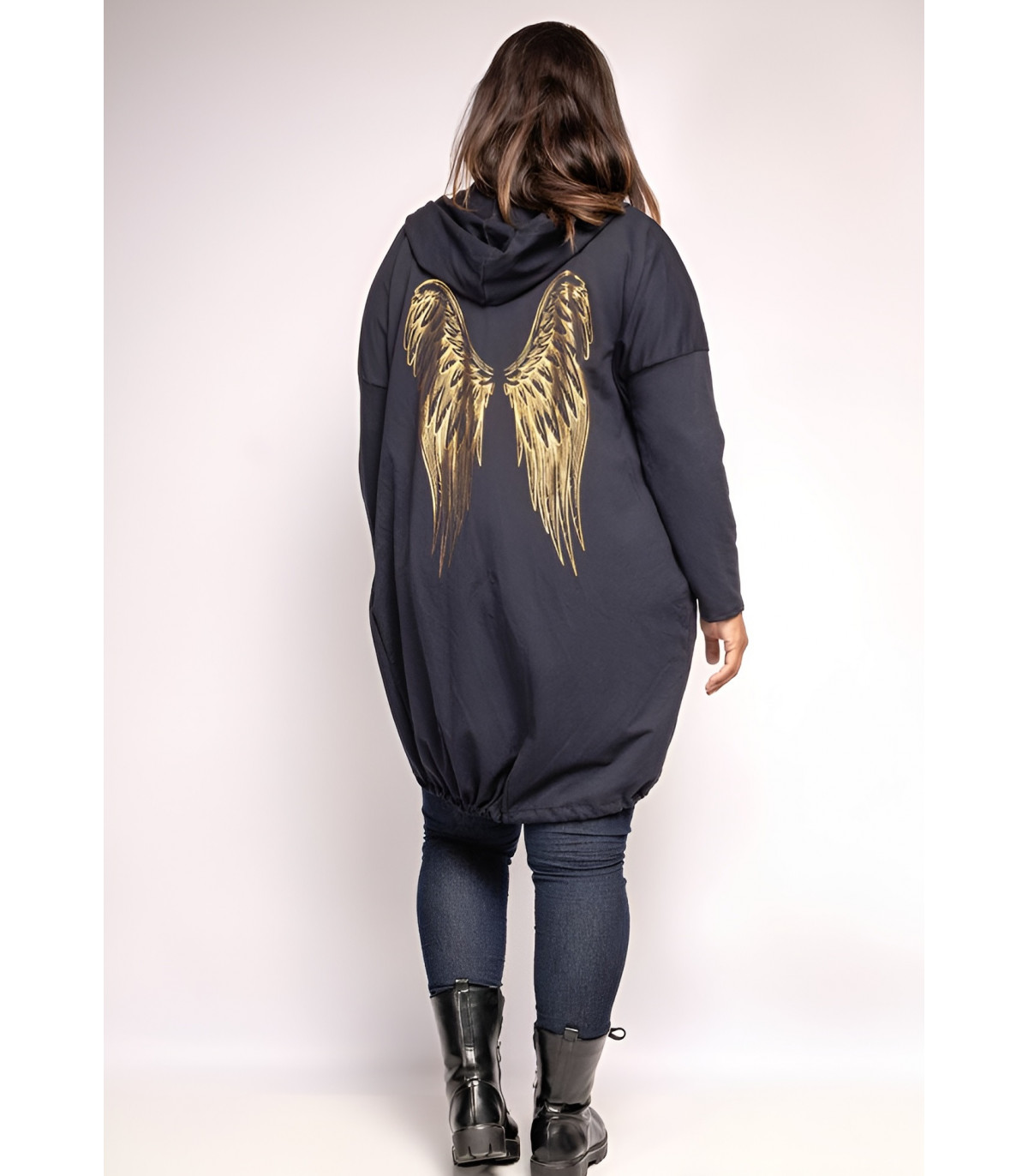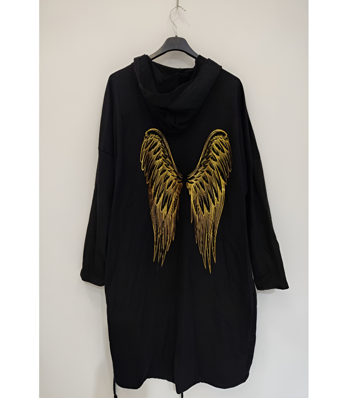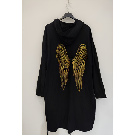 Pitkä musta neuletakki kultaisilla siivillä on täydellinen lisä jokaisen muodokkaan ja näyttävää pukeutumista rakastavan naisen vaatekaappiin. Sen ajaton tyyli, mukava istuvuus ja monikäyttöisyys takaavat, että löydät sille käyttöä monissa eri tilanteissa ympäri vuoden.