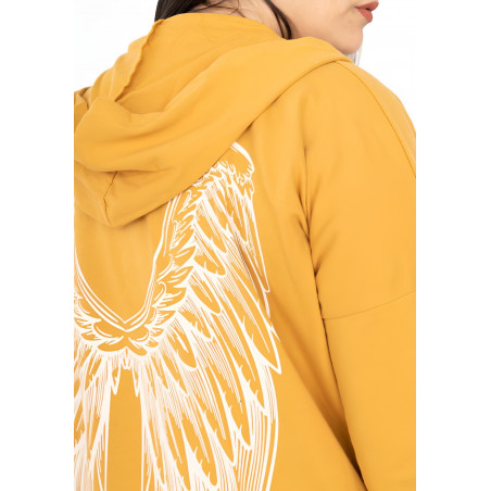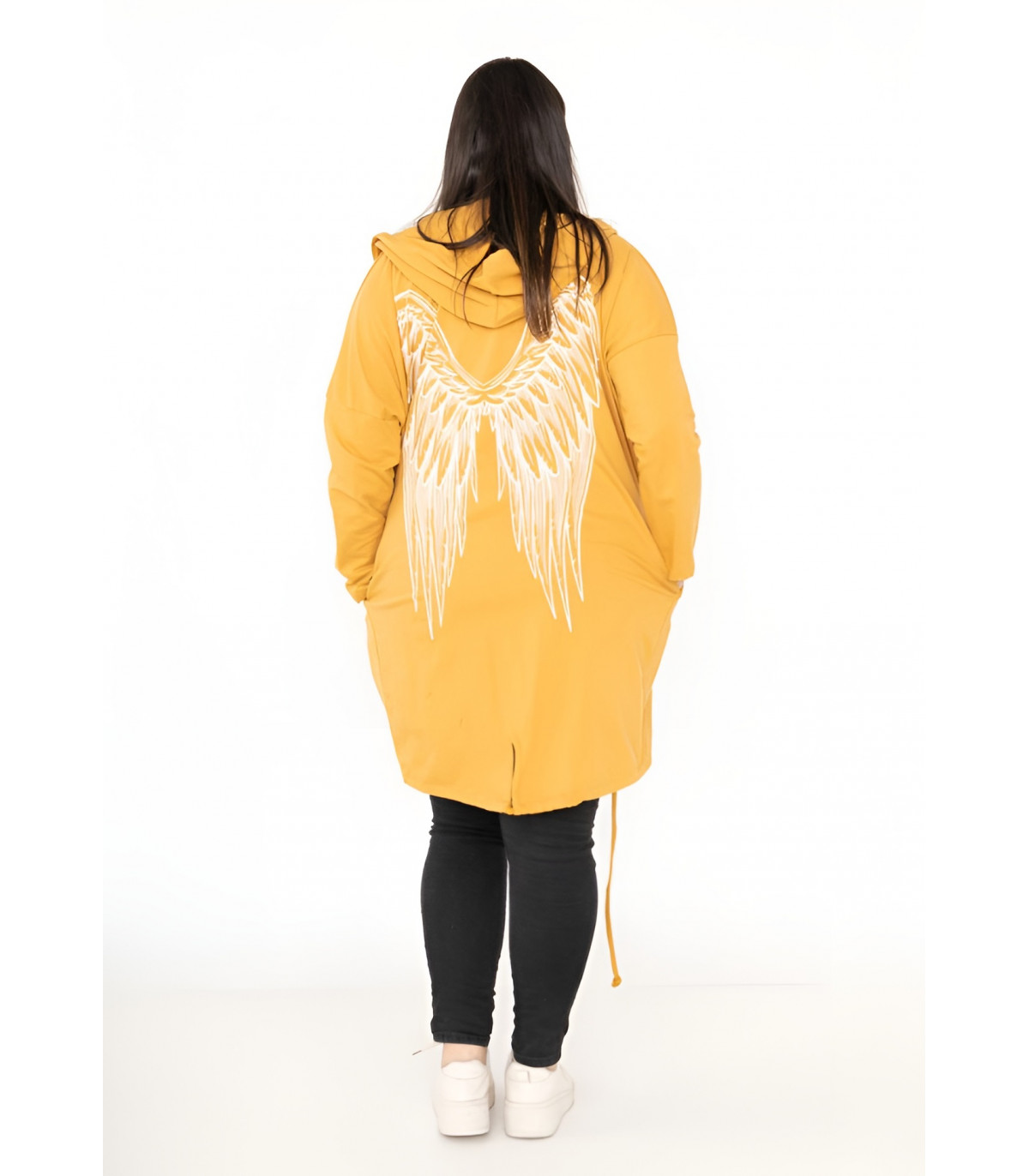 Pitkä sinapinkeltainen neuletakki valkoisilla siivillä on täydellinen lisä jokaisen muodokkaan ja näyttävää pukeutumista rakastavan naisen vaatekaappiin. Sen ajaton tyyli, mukava istuvuus ja monikäyttöisyys takaavat, että löydät sille käyttöä monissa eri tilanteissa ympäri vuoden.