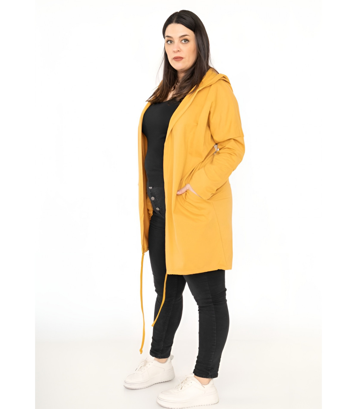 RZ fashion sinapinkeltainen pitkä avonainen neuletakki plus koossa - näyttävä lisä muodokkaan naisen vaatekaappiin