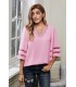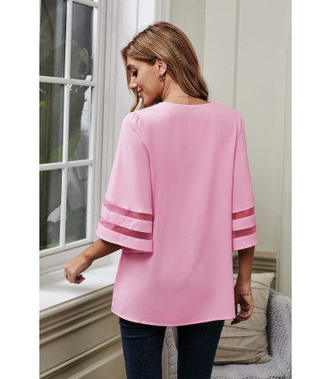 Vaaleanpunainen mesh- ja pitsikoristeinen kellohihainen pusero