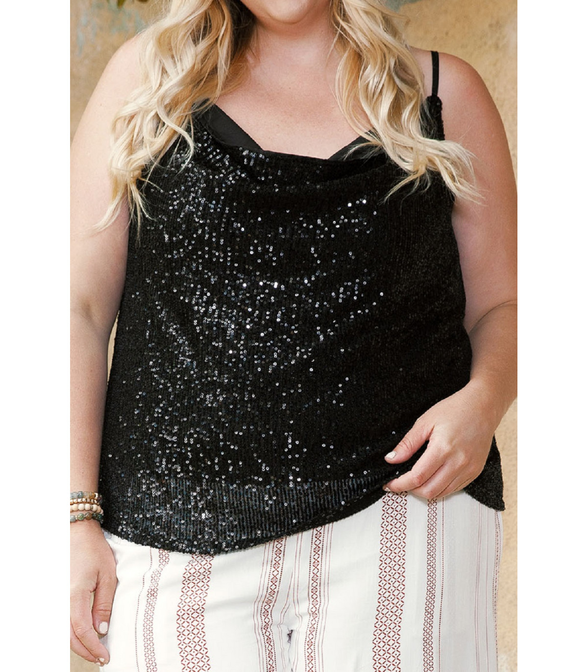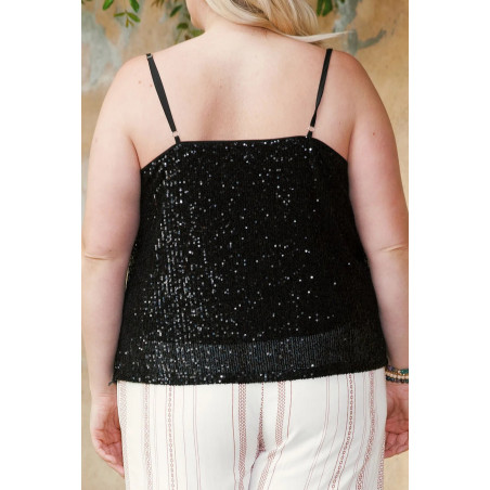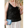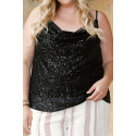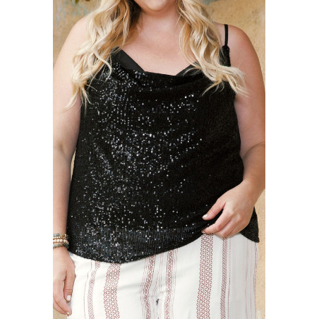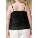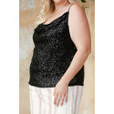 Säihkyvä paljettitoppi XL plus koossa on mukava päällä, koska materiaalissa on elastaania mukana. Plus koon paljettitoppi on saatavilla kokoina XL-3XL. Valoissa säkenöivät, kimmeltävät paljetit saavat sinut säihkymään tanssilattialla. Tyylikäs musta paljettitoppi juhliin pelastaa sinut monilta vaatekriiseiltä.