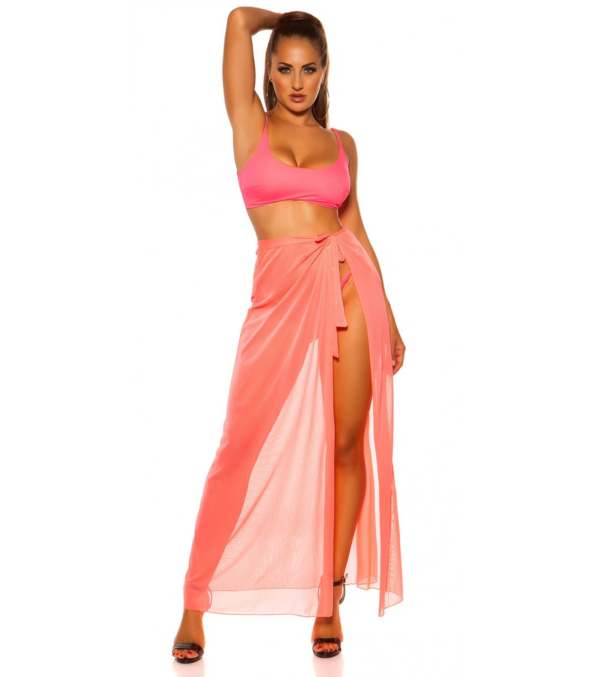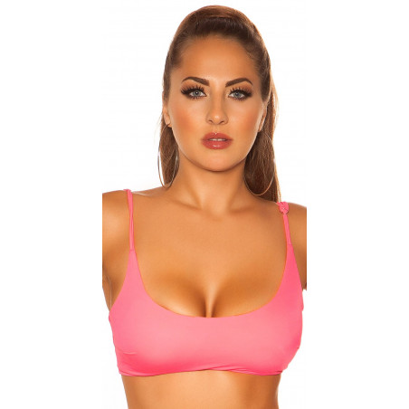 Sporttinen neonkoralli bikiniyläosa irrotettavilla toppauksilla ja säädettävillä olkaimilla. Täydellisesti yhteensopivia bikinihousuja myydään erikseen.