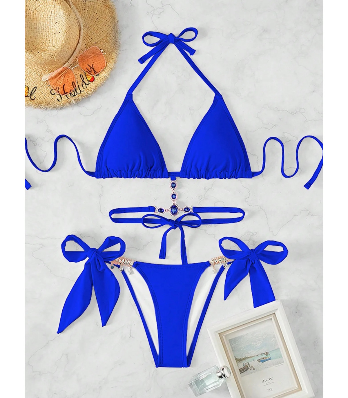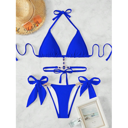 Näyttävät siniset narubikinit strassikoristeilla - seksikkäät bikinit itsevarmoille naisille