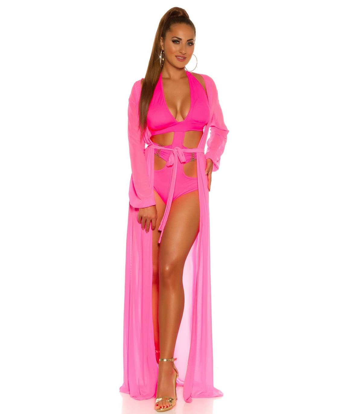 Koucla neonpinkki strassikoristeinen monokini