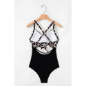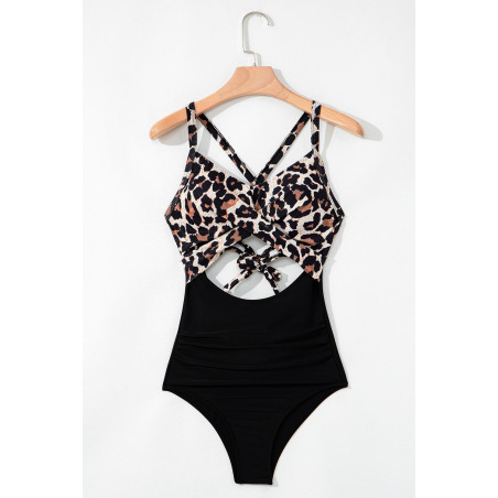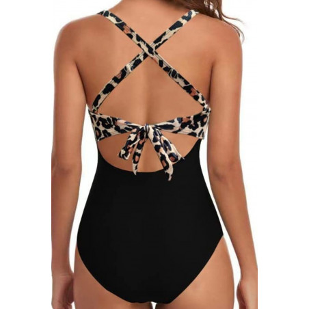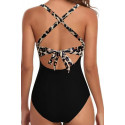 Musta/leopardikuvioinen uimapuku näyttävällä leikkauksella. Jos ajattelit, että yksiosainen uimapuku on automaattisesti tylsä tai epäseksikäs vaihtoehto, mieti uudelleen. Tämä seksikäs uimapuku nimittäin saa sinut muuttamaan mielesi. Tämä yksiosainen uima-asu on erinomainen sinulle, joka kaipaat uima-asultasi sekä peittävyyttä että näyttävyyttä. Naisellinen leikkaus korostaa povea, mutta peittää masua - antaen samalla tukea alavatsalle. Säädettävät, selän takaa ristiin menevät antavat tukea ja selän takaa solmittava kiinnitys takaa paremman istuvuuden. Leokuosi yhdistettynä mustaan alaosaan on täydellinen yhdistelmä räväkkyyttä ja turvallista.