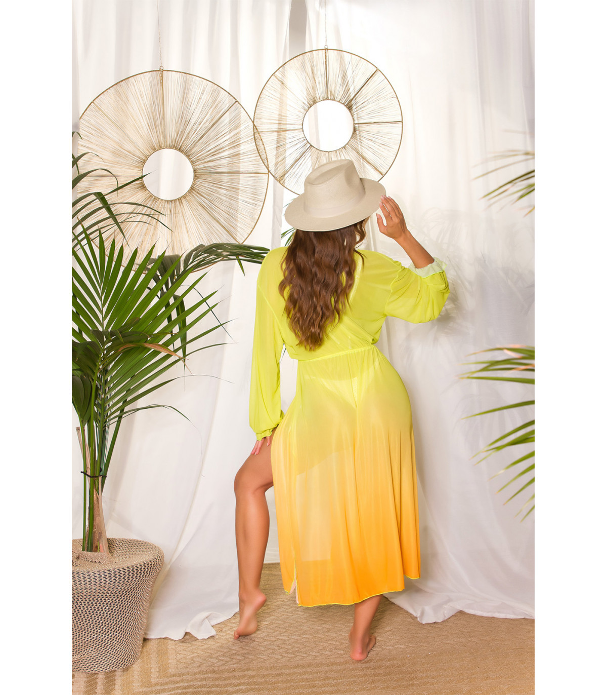 Koucla keltaoranssi liukuvärjätty rantakimono