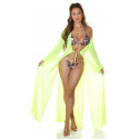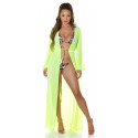 Koucla neonkeltainen pitkä mesh-kimono kultanauhoilla