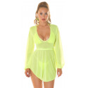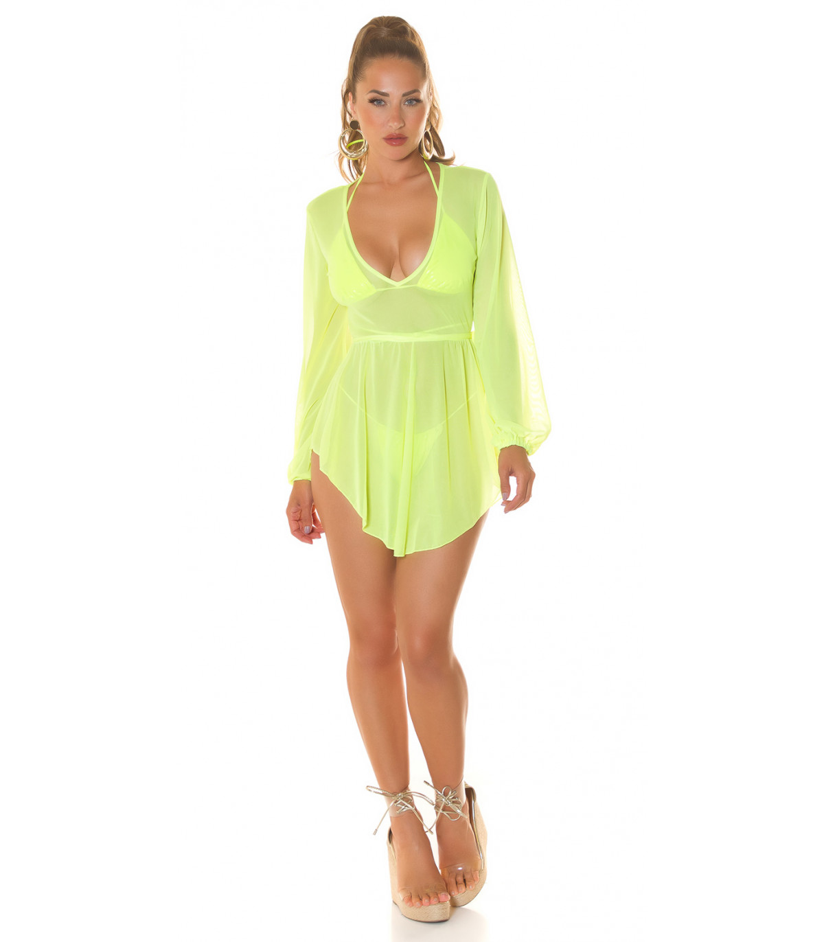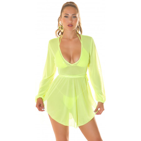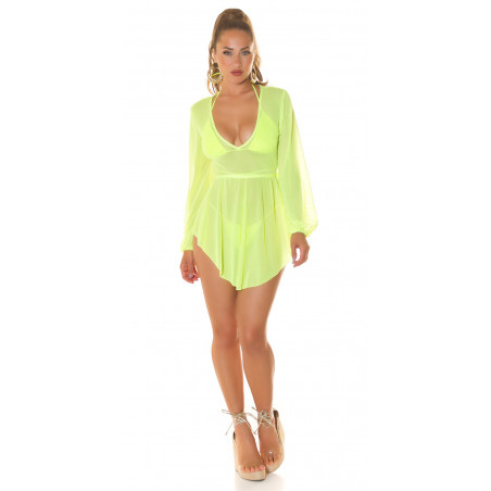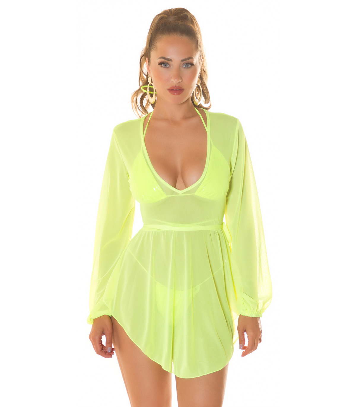 Koucla neonkeltainen pitkähihainen mesh rantatunika