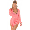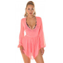 Koucla neonkoralli pitkähihainen mesh rantatunika
