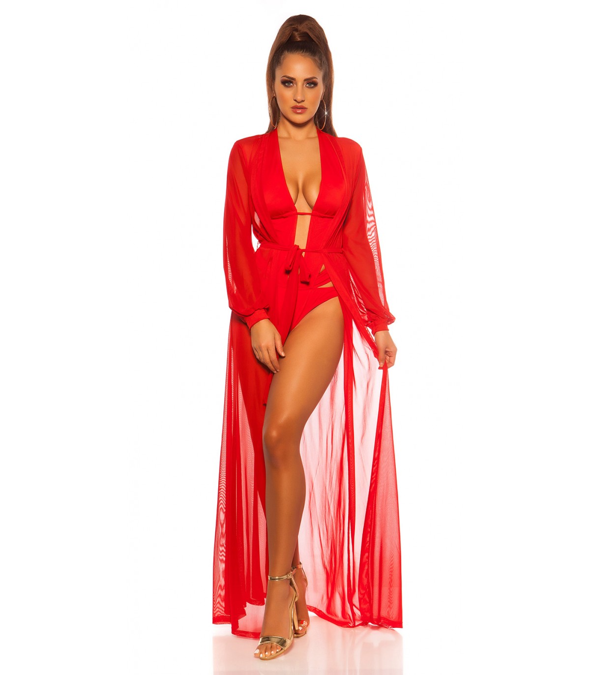 Koucla punainen pitkä rantakimono