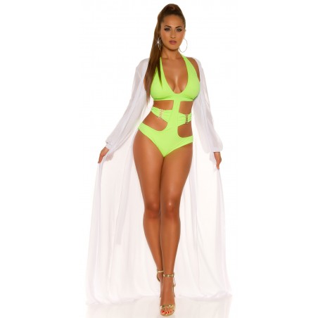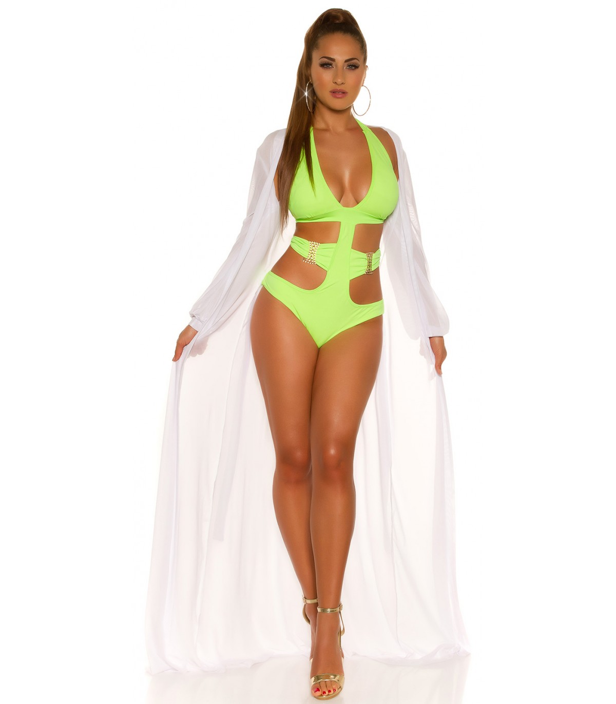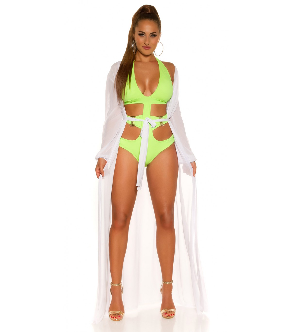 Molemmat valkoinen ja keltainen ihania! Kangas todella mukavantuntuinen ja hiukan venyvä, ja hohtaa UV-valossa kauniisti! Peittäviä eivät tosiaan ole ja koska on onesize niin M-L kokoiselle menee kyllä mutta kangasta ei riitä ihan täysin peittämään kehoa että jää vähän auki edestä ja koska on myös vähän liukas kangas.