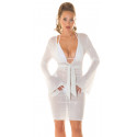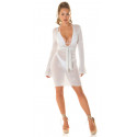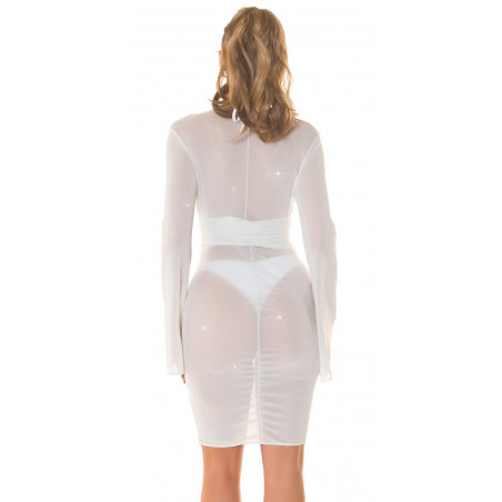 Koucla valkoinen pitkähihainen mesh v-rantamekko glitterillä