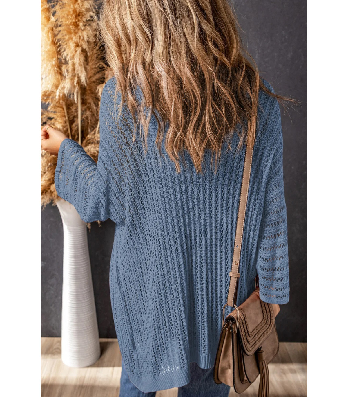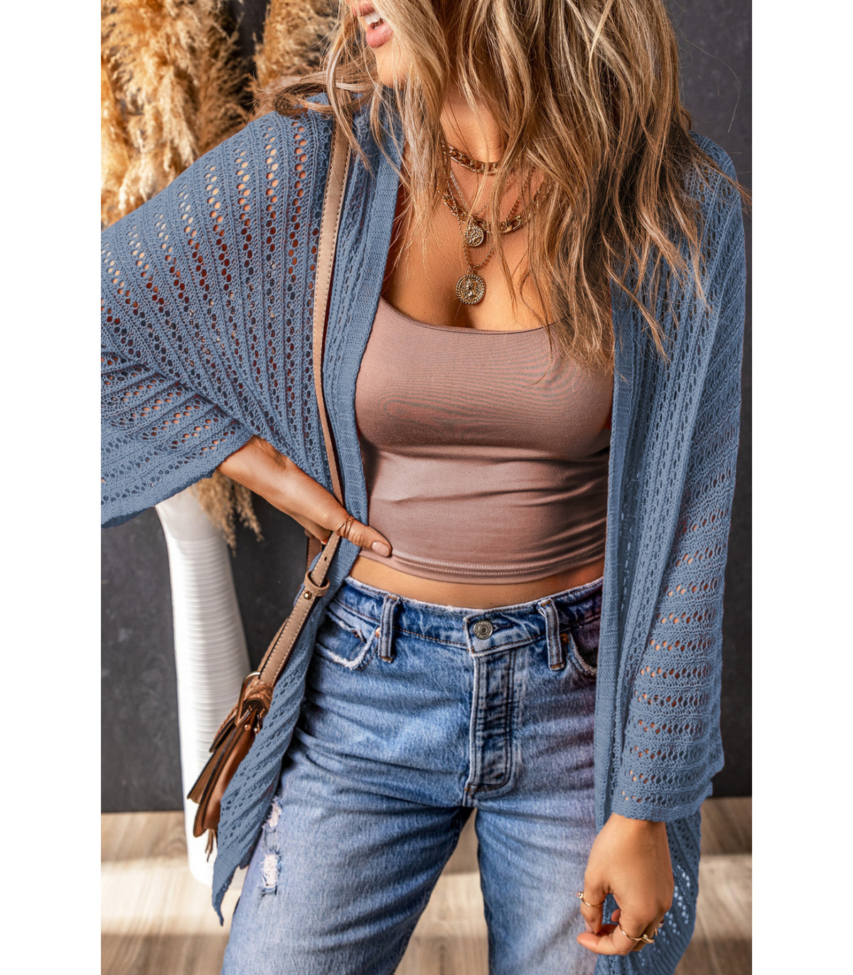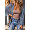 Vaaleansininen avonainen virkattu neuletakki/kimono. Tämä kauniin värinen neuletakki/kimono on monikäyttöinen vaate, joka sopii osaksi erilaisia asukokonaisuuksia; se sopii kesällä rantatyyliin uima-asun suojaksi sekä esimerkiksi farkkushortsien kanssa täydentämään kesätyyliin ja tuomaan lämpöä viileneviin iltoihin. Voit myös käyttää sitä neuletakkina ympäri vuoden. Vaaleansininen kimono tuo väriä rantalookiin - näyttäen erityisen upealta valkoisen asun kanssa. Vaaleansininen neuletakki sopii upeasti esimerkiksi farkkujen kanssa.