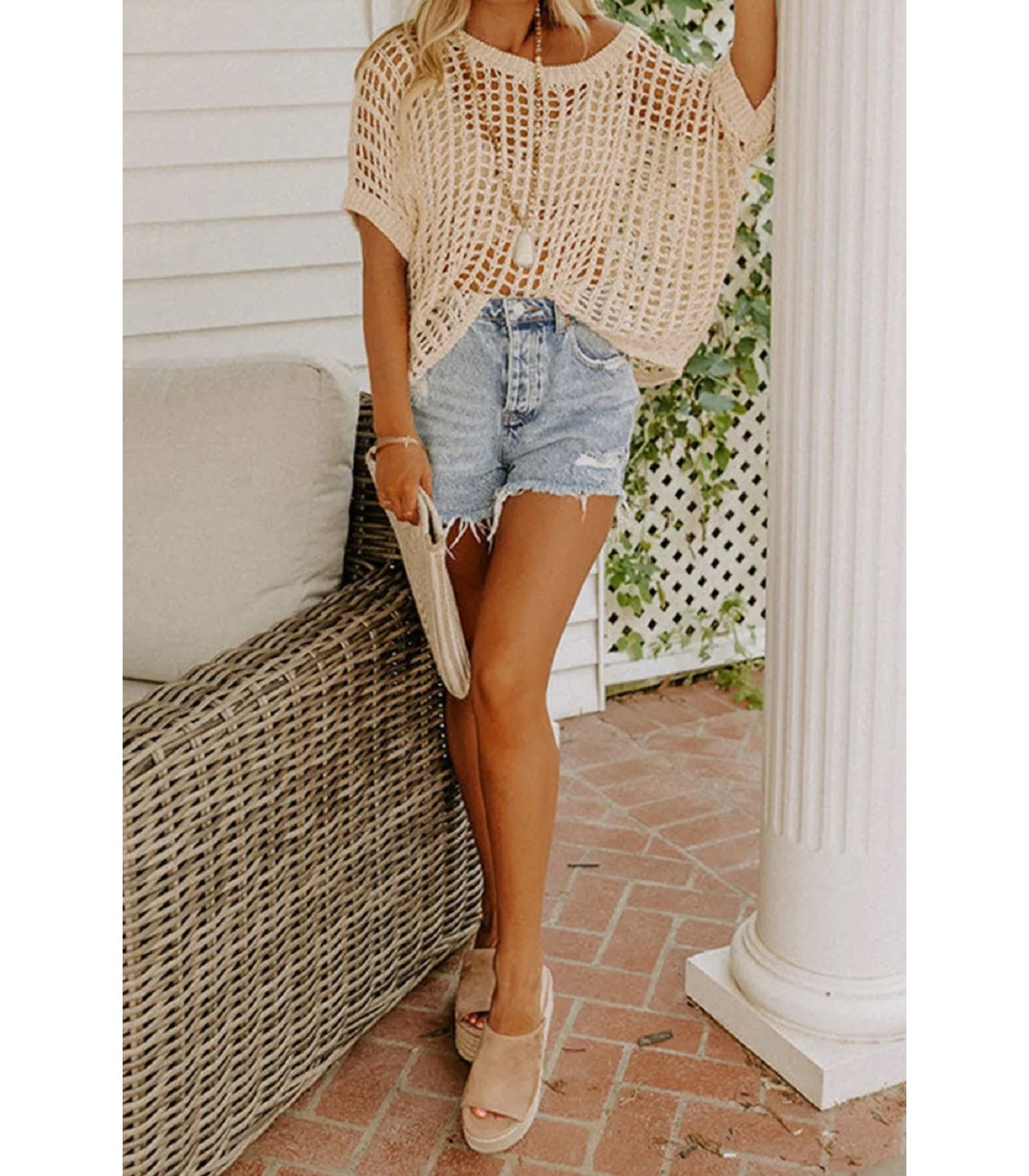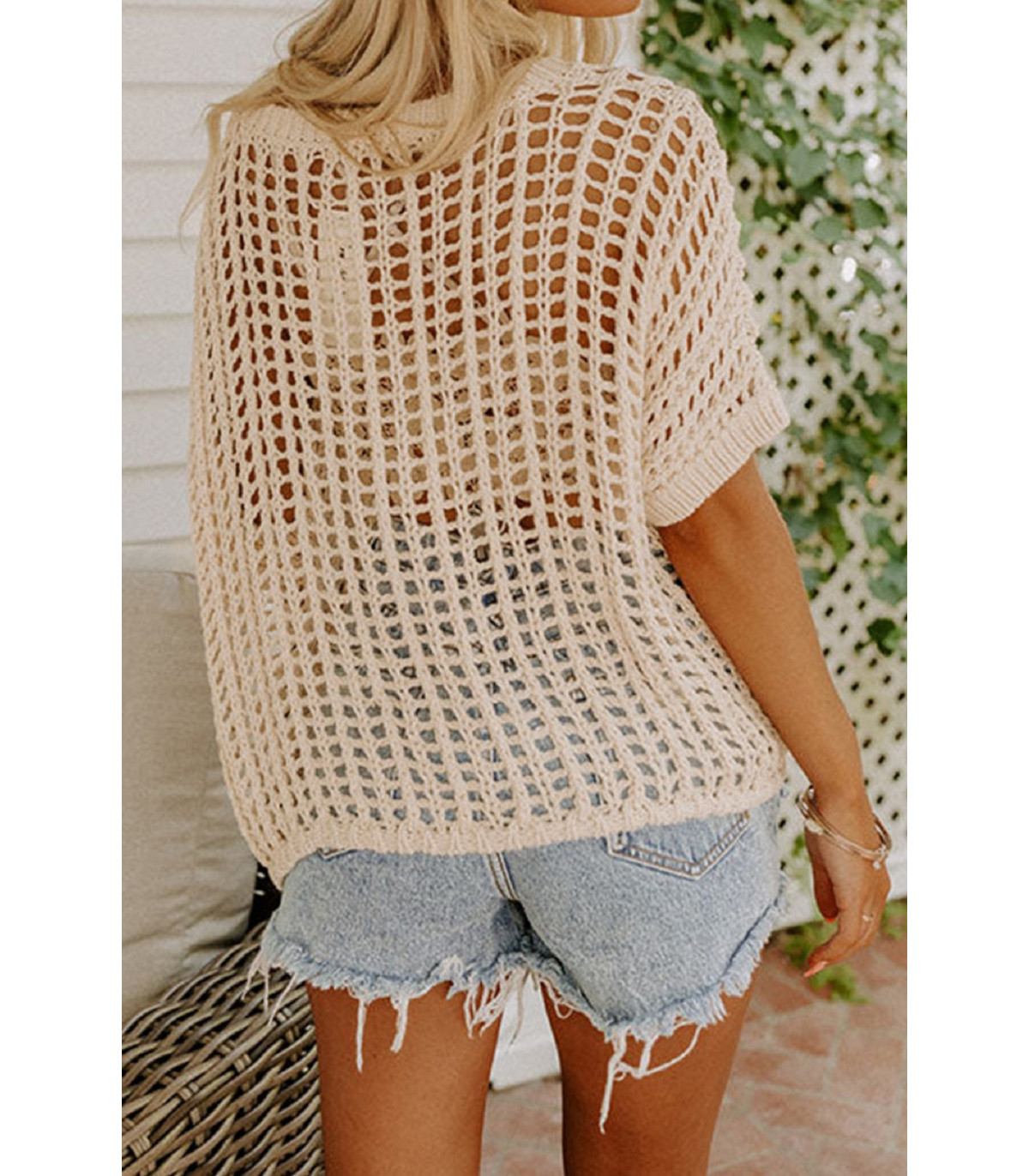 Aprikos kortärmad virkad skjorta