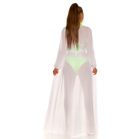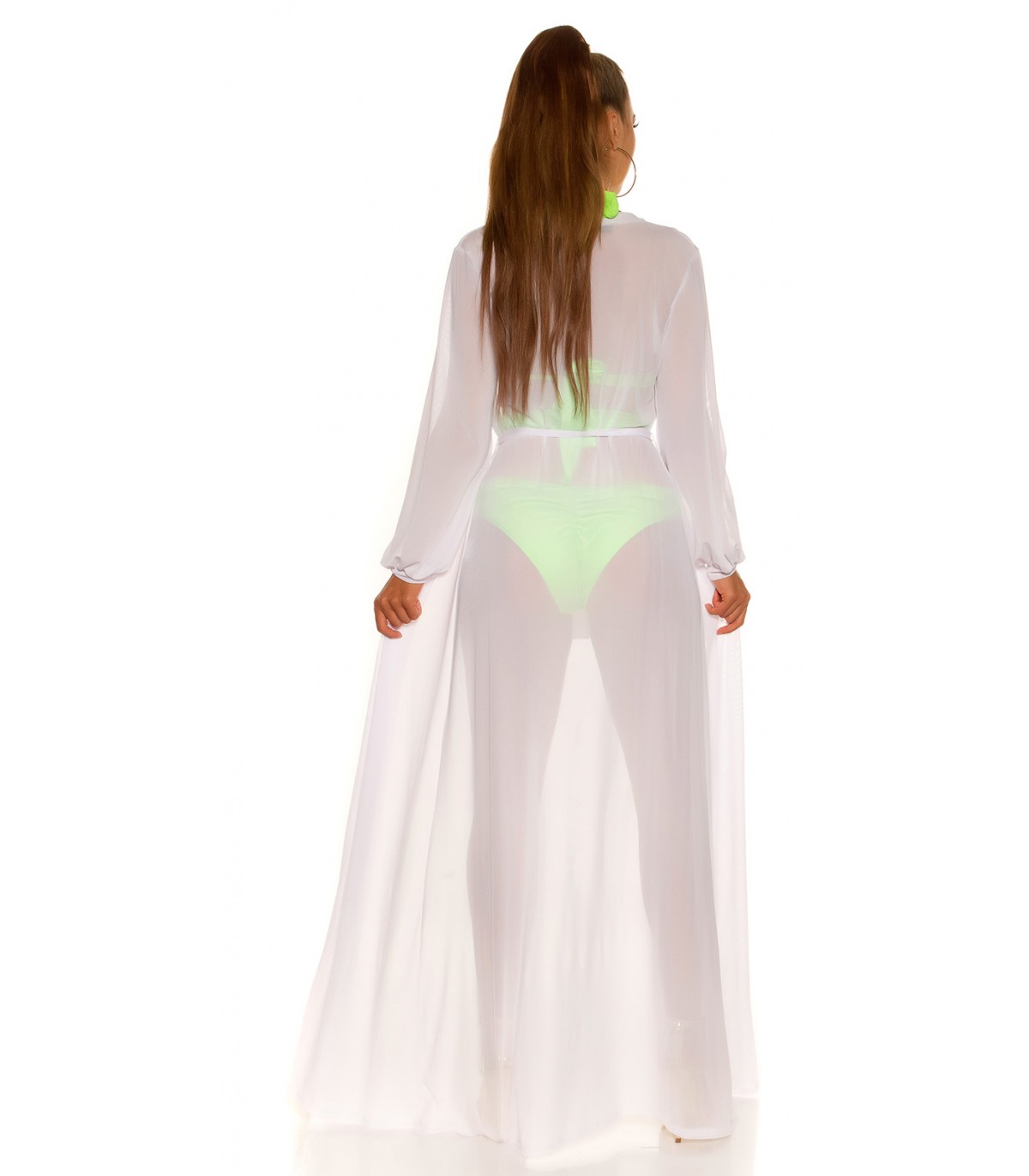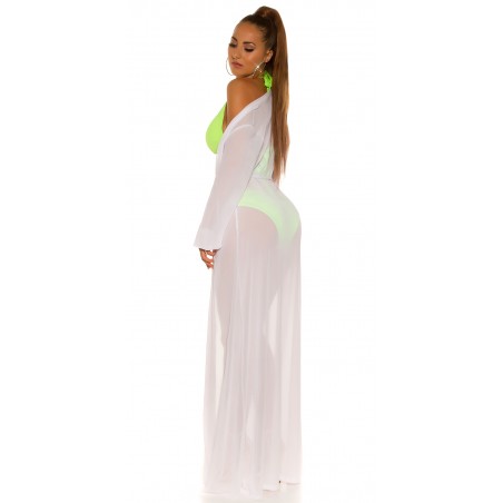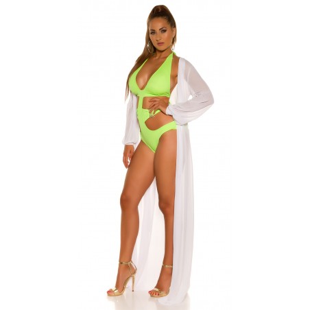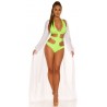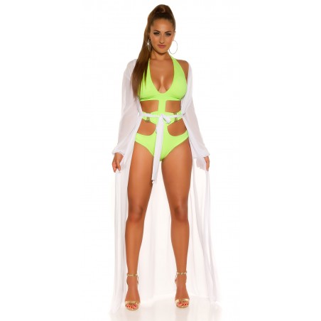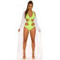 Molemmat valkoinen ja keltainen ihania! Kangas todella mukavantuntuinen ja hiukan venyvä, ja hohtaa UV-valossa kauniisti! Peittäviä eivät tosiaan ole ja koska on onesize niin M-L kokoiselle menee kyllä mutta kangasta ei riitä ihan täysin peittämään kehoa että jää vähän auki edestä ja koska on myös vähän liukas kangas.