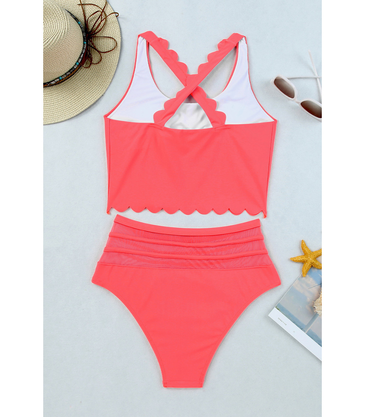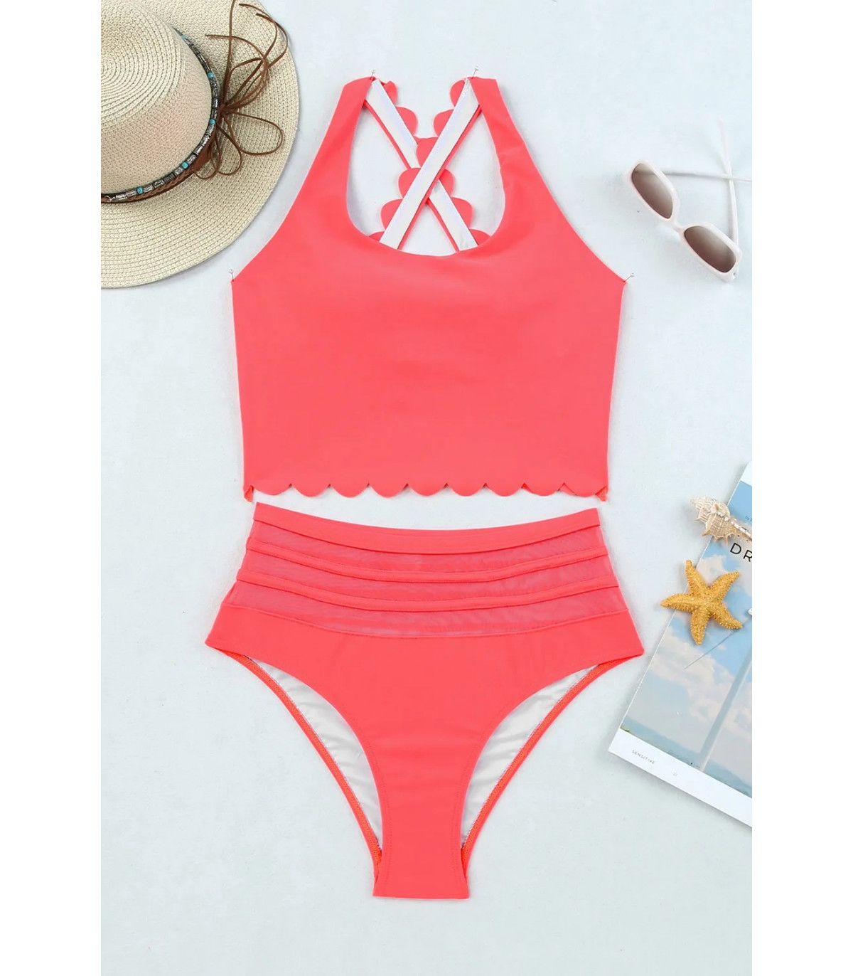 Aaltoilevat korallit korkeavyötäröiset bikinit