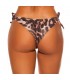 Leopardmönstrad bikinibyxa med sidoknutar i ryggen. Brazilian bikini är den perfekta bikinitrosan när du letar efter en rumpsmickrande bikini. De sidoknutna bikinibyxorna ser till att du kan justera dem så att de passar perfekt för dig när din bikinistorlek är rätt. Brasilianska bikinibyxor som avslöjar rumpan är lämpliga för självsäkra kvinnor som inte är rädda för beundrande blickar. Den leopardmönstrade bikinitrosan drar blickarna till sig. Leo-mönstret passar bra ihop med en Leo-mönstrad eller monokrom bikiniöverdel. Brazilian bikini trosa finns i storlekarna S-XL/36-42.