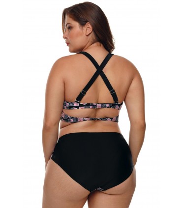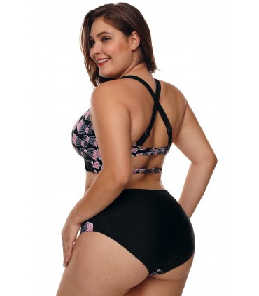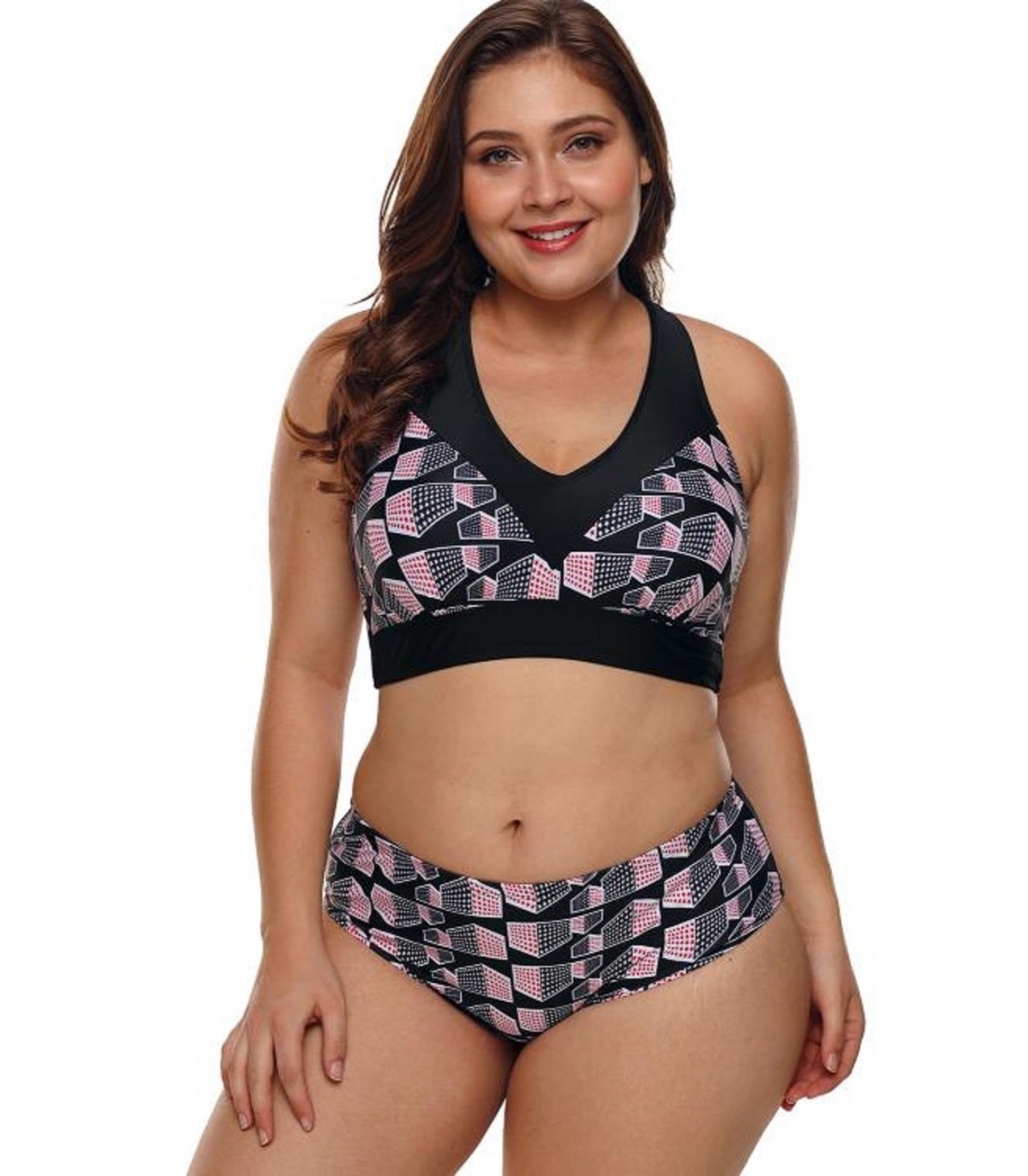 Tryck mönstrade lätt toppade v-bikinis och matchande bikinitrosor med hög midja. Passar bäst för stora bönor.