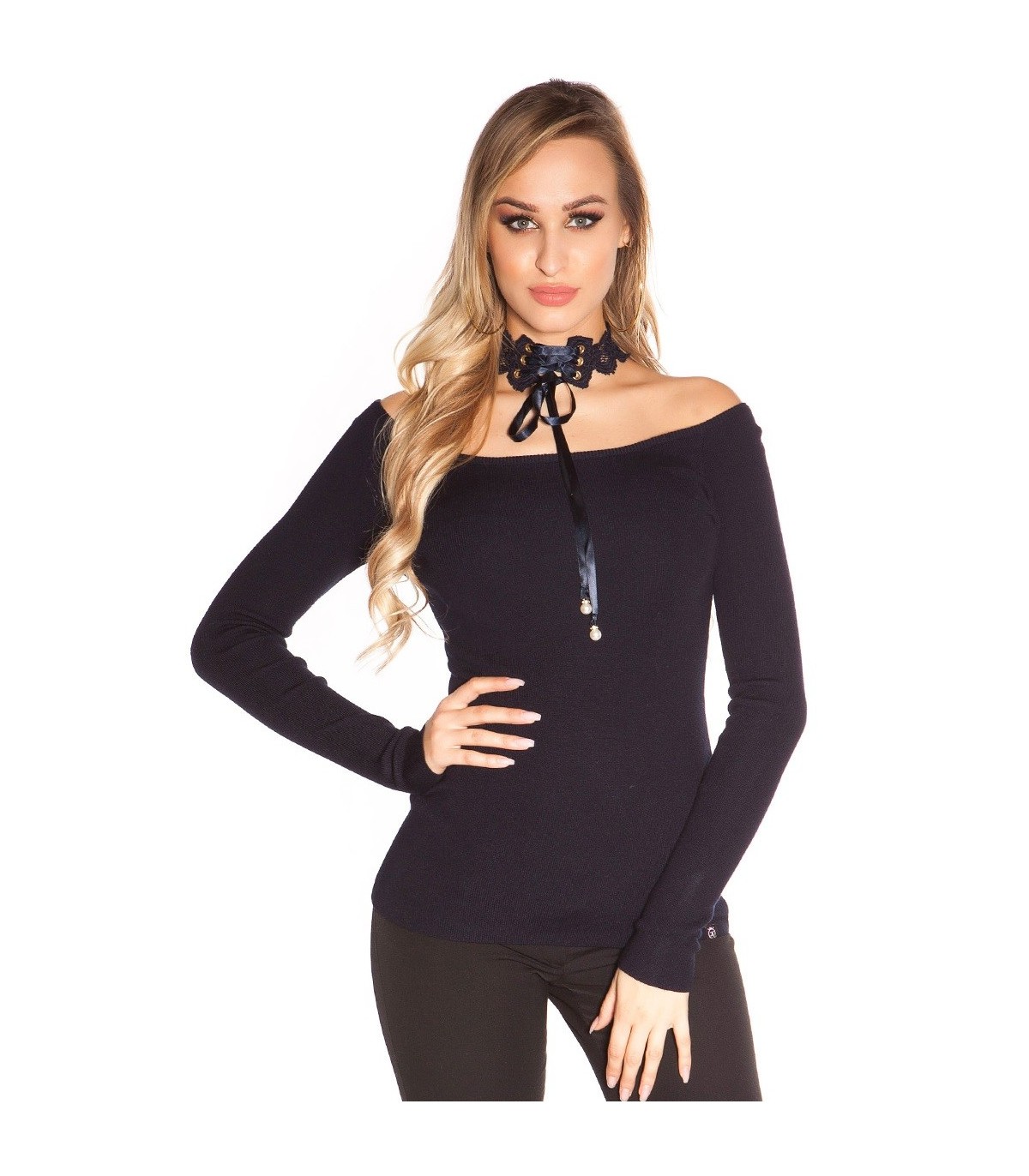 Koucla mörkblå off-shoulder lacechoker sticka [SISTA CHANSEN]