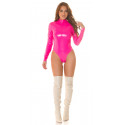 Sexig rosa långärmad latex med hög krage bodysuit. Materialet som imiterar latex är varmt. Även om bodyn är täckande - det är trots allt en långärmad kropp med hög krage - kommer en rosa latexbody inte att lämna dig kall. Du kan kombinera den med en mängd olika byxor och kjolar. En dold dragkedja på ryggen hjälper till att ta på bodyn. Om det verkar för svårt att stänga dragkedjan ensam, be din partner eller vän om hjälp. Du kan också prova bodyn tvärtom, dvs med dragkedja på framsidan; Detta gör också att du kan bära en body mer öppet om du vill. En glänsande body ser bäst ut när den är smal och slickar kroppen. Ta dock inte för liten storlek, eftersom en latexbody med långa ärmar som är för liten lättare kan gå sönder. Bodyn passar bäst för personer runt 165 cm.