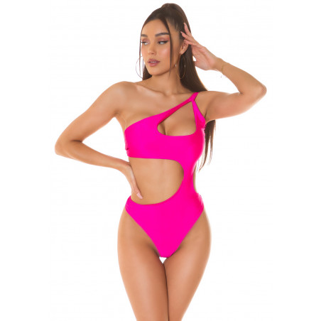 Rosa utseende en-axel utskuren monokini / kropp, som passar bäst för ca 165 centimeter. De lätt vadderade koppdelarna passar bäst för ca B-kupor.