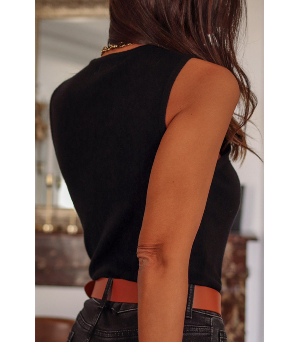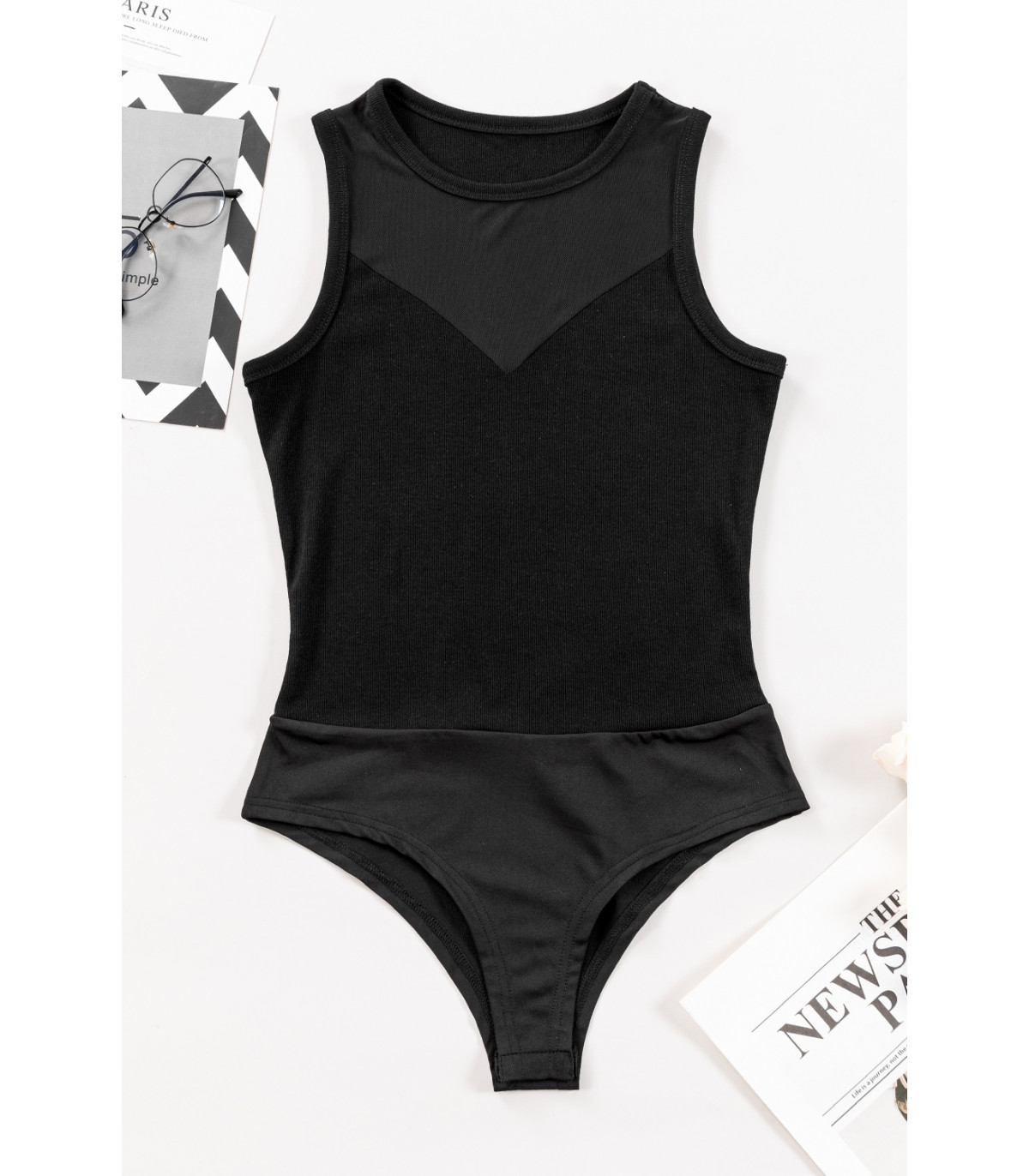 Musta hihaton body mesh pääntiellä