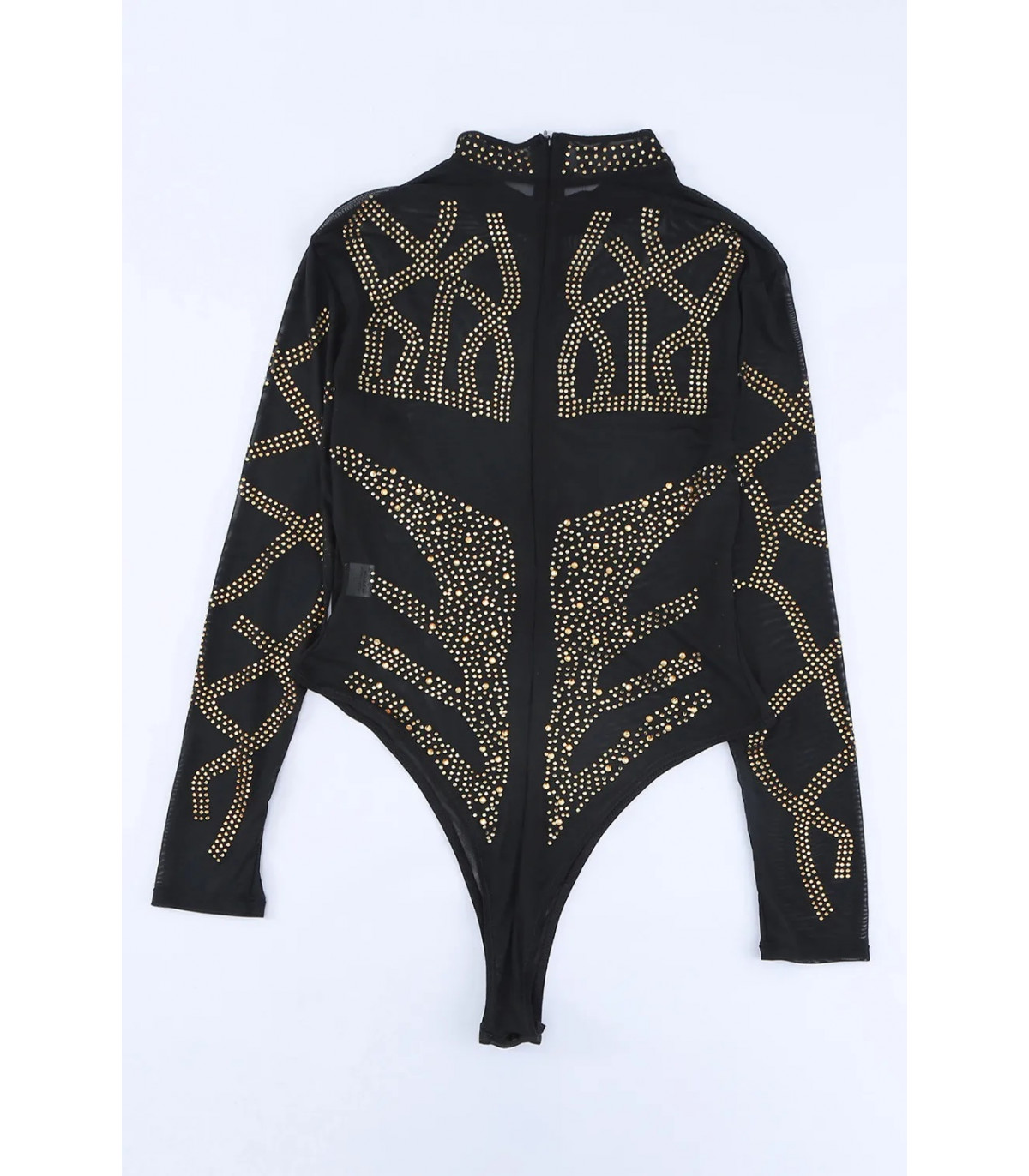 Svart långärmad strassdekorerad meshkropp