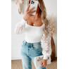 Body näyttää todella hyvältä päällä. Bodyssä on sisäpuolella rintojen kohdalla suojakangas, jossa on kuminauha rintojen alapuolella. Eli rintsikat ei näy läpi, mutta kuminauha tuntuu hieman kireältä. Myös hihat ovat enemmän kapeammat/ihonmyötäiset. Kokeilin siksi kahta eri kokoa S ja M (olen S kokoinen), mutta päädyin silti valitsemaan koon S. Kokoa suuremmassa body jää muuten löysäksi vyötäröltä ja kaula-aukosta. Vastaa siis kokoaan ja oma koko istuu kokonaisuudessan paremmin. :)