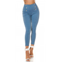 Koucla blå knapp och rufsiga treggings