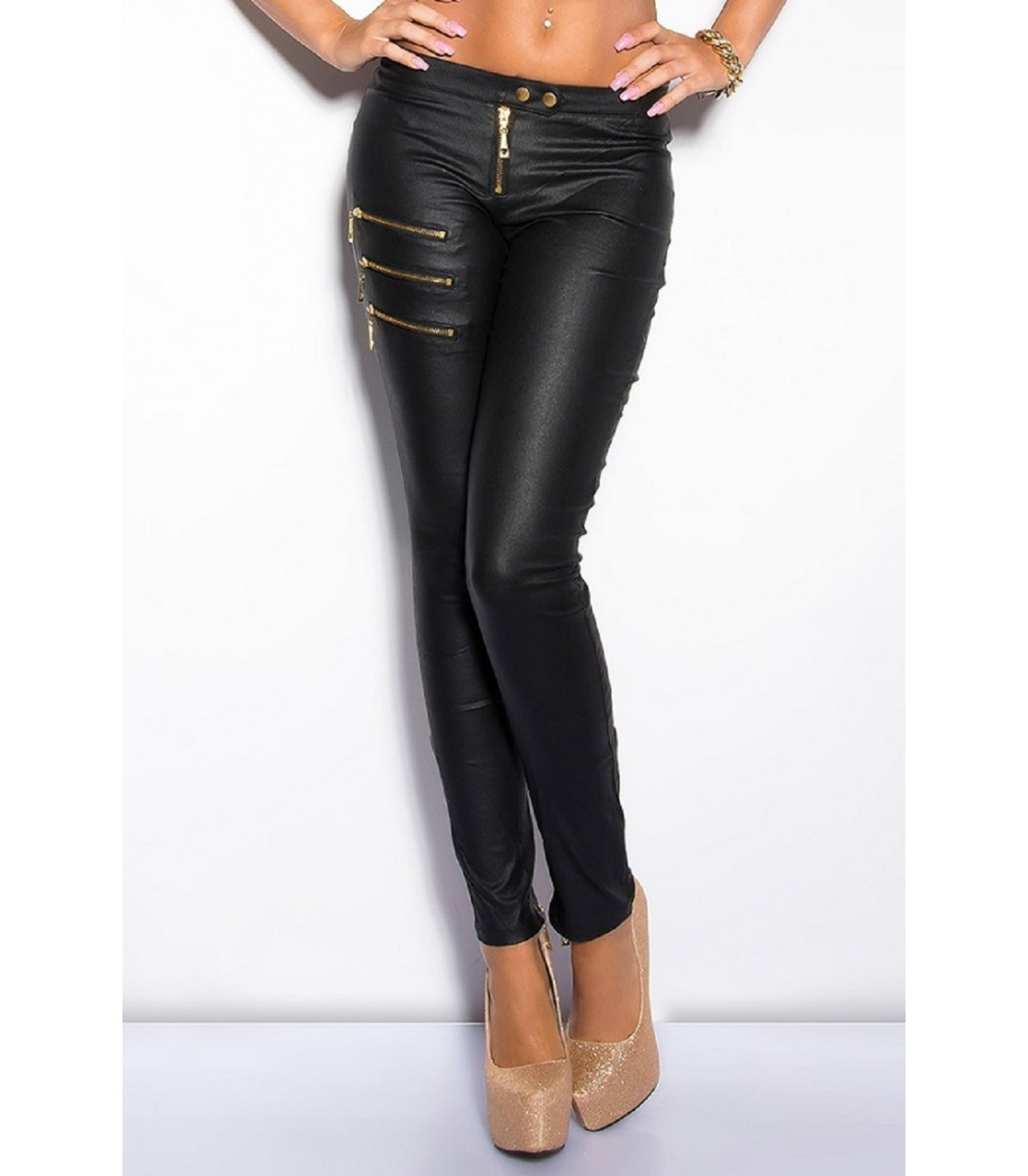 Koucla black zipped leather pants (Automatic translation)